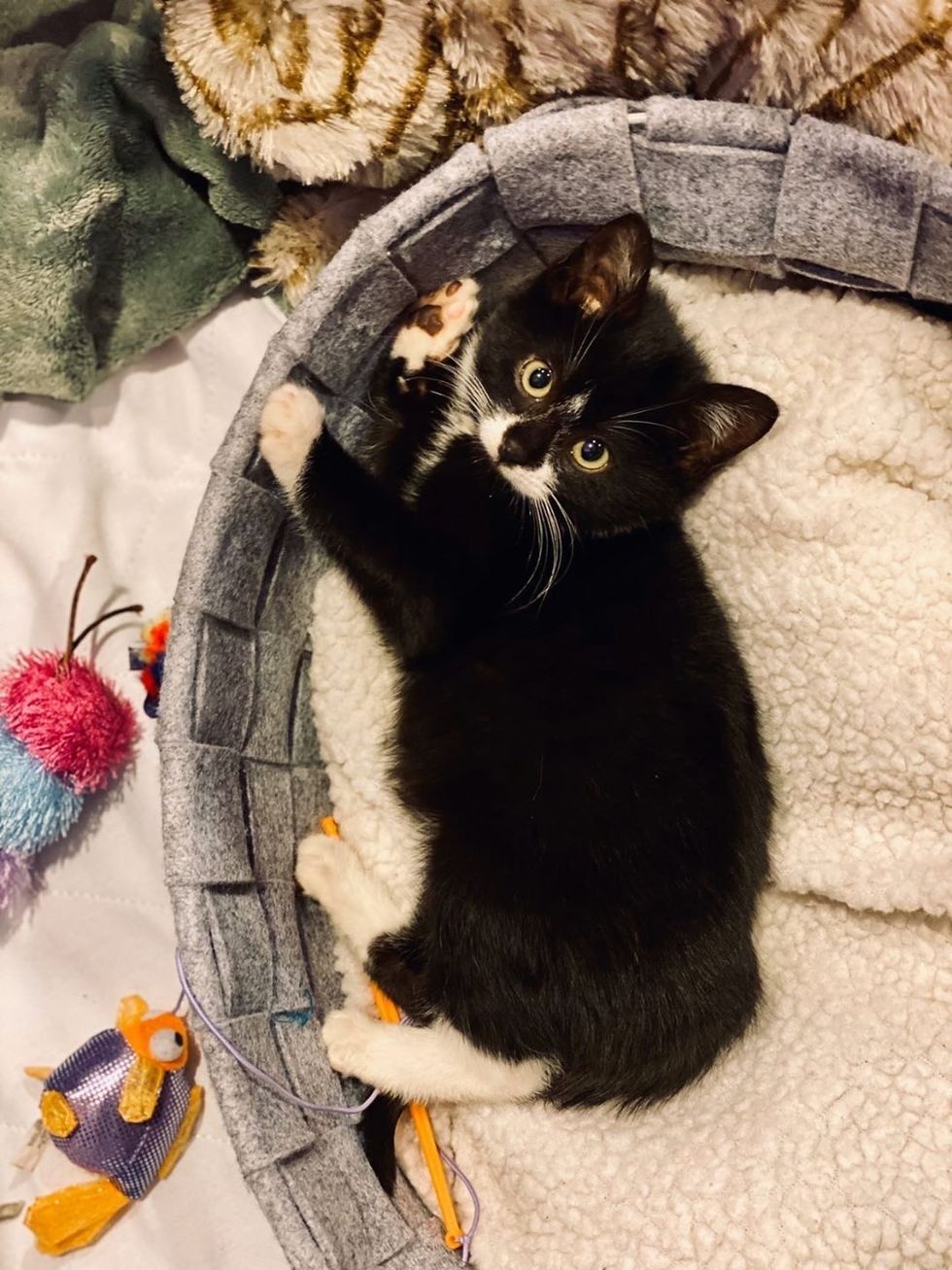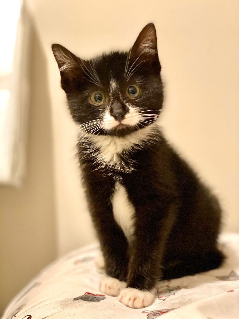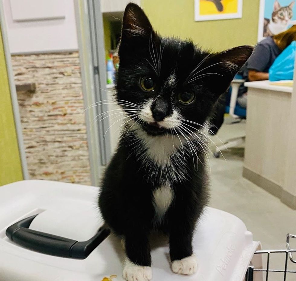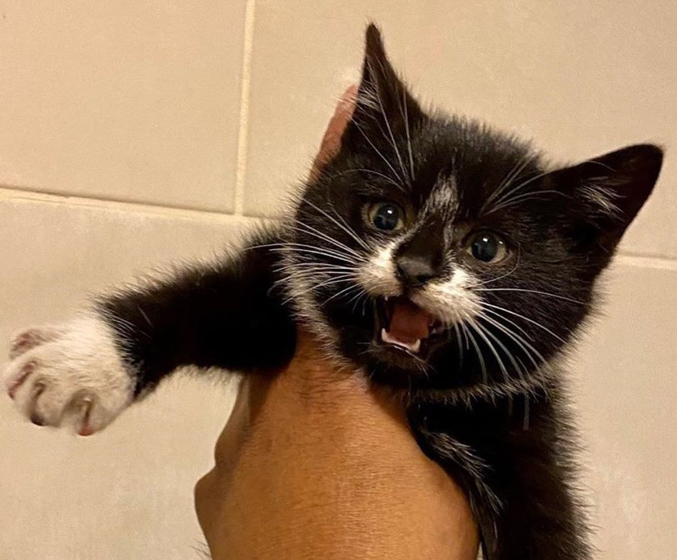 Stephanie Tulien, president of Little Wanderers, took in the tuxedo without hesitation. Their network of volunteers sprang into action to get the kitten the help he needed to thrive.