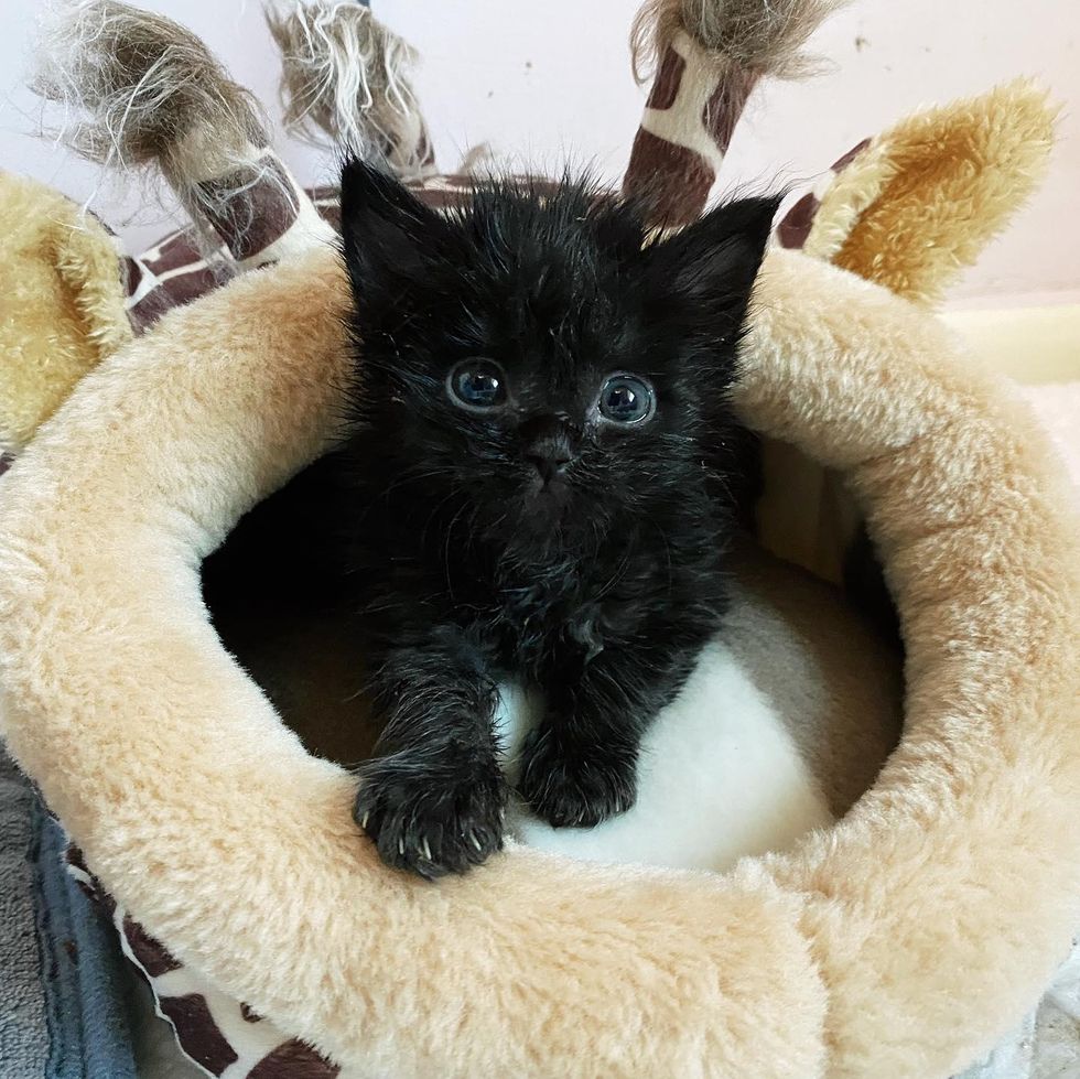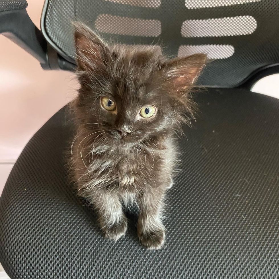 Over the next few weeks, the kitten grew in weight and fluff. She turned out to be a long-haired panther kitty with adorable ear tufts and plenty of fuzz sprinkled all over her coat.
