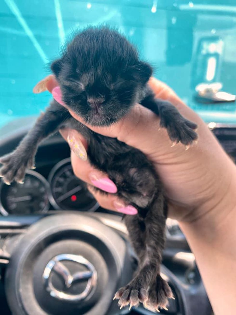The kitten whose eyes hadn't opened, was in need of critical care. Dannielle rushed to pick her up and brought her home. "Despite her situation, she was in good spirits."