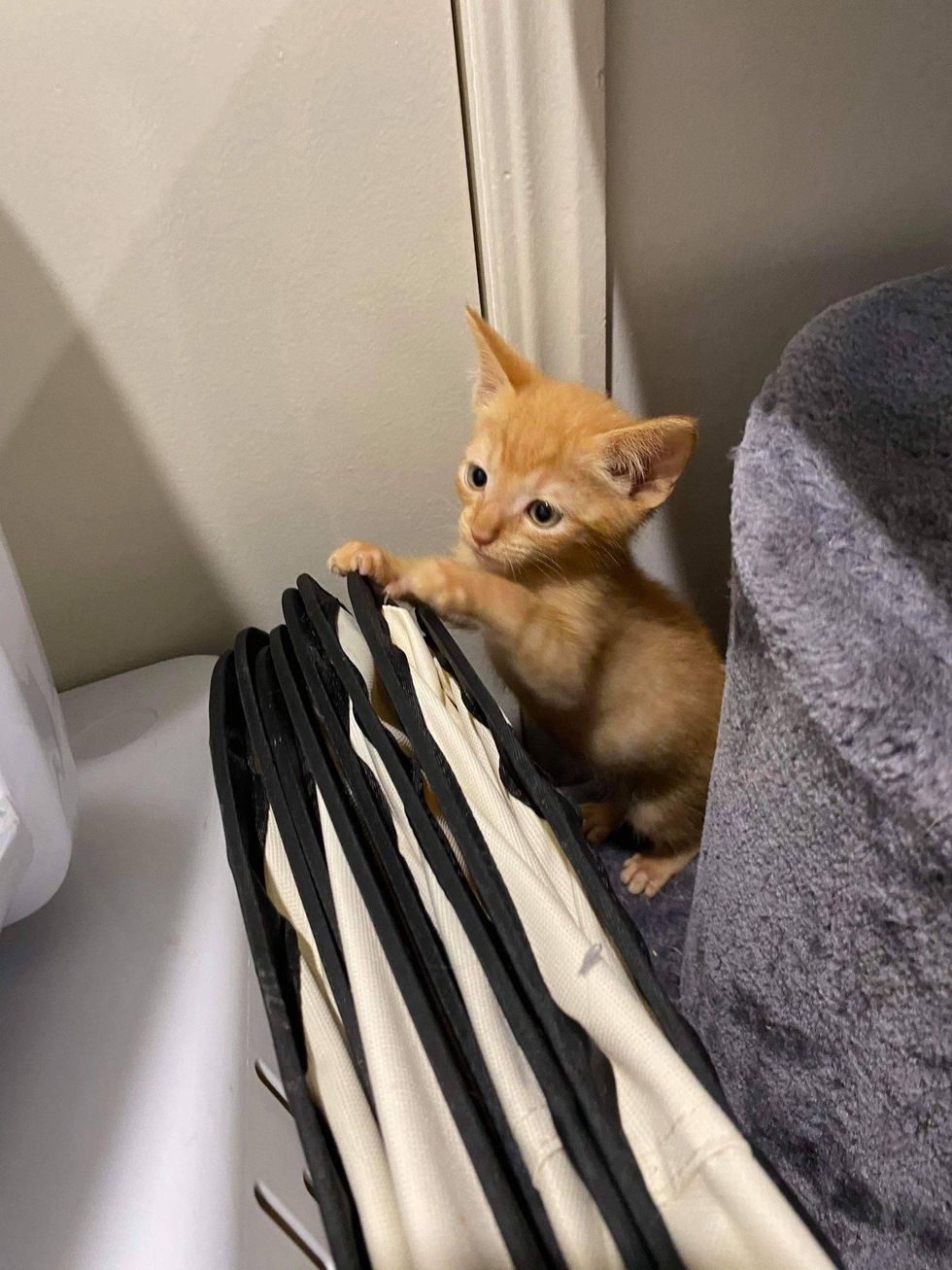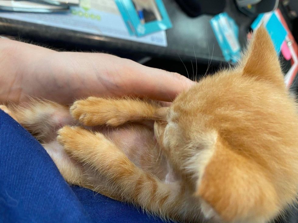 A Good Samaritan discovered a little puff of orange running on the streets before disappearing in some rocks near a creek. When they realized it was a kitten and that they needed assistance to get him out safely, they went on social media to seek help.