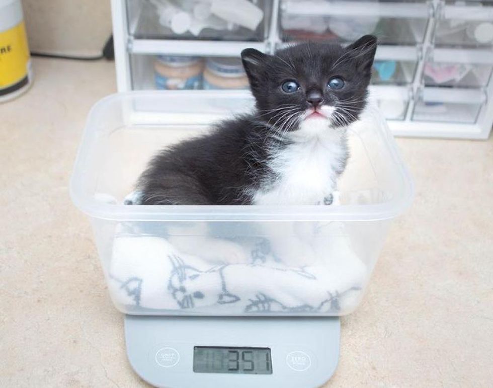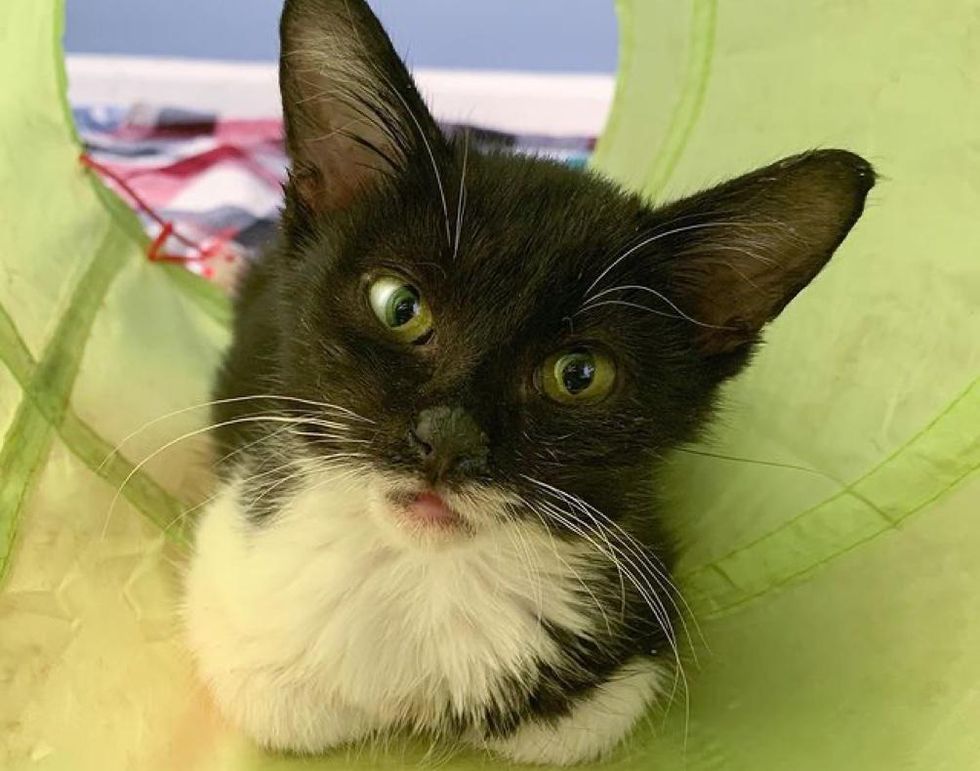 Cloud the tuxedo was two weeks old when he was found in a window well along with his siblings. They were brought to Anderson Animal Shelter in Illinois, needing round-the-clock bottle feedings and a lot of TLC.