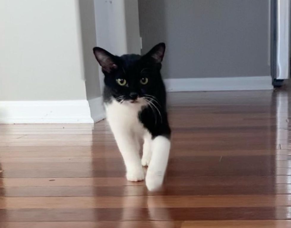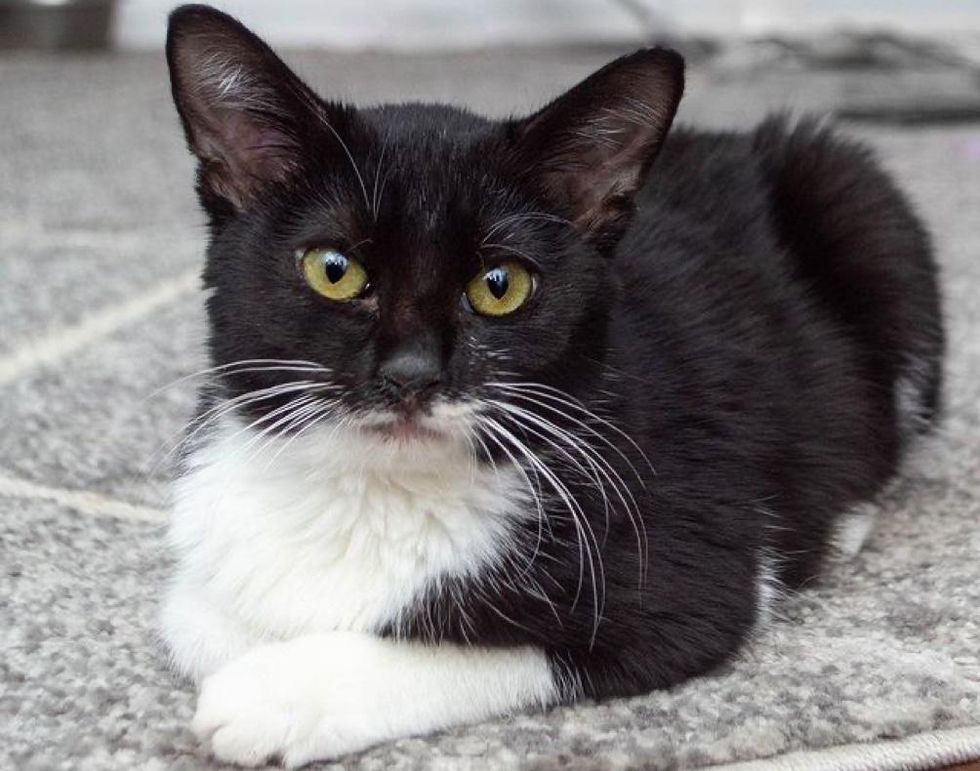 A kitten won over the person who saved his life and blossomed into a beautiful tuxedo cat.