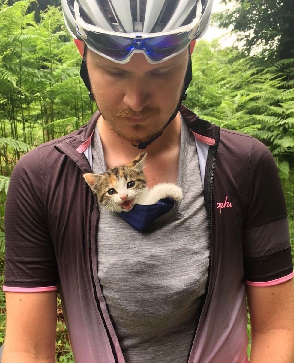 It was a long trip home, and there was no safe way to keep the kitten securely stowed in their jerseys as the little one moved constantly. With no other options, the couple decided to rush back home to get their car. After placing the kitten in her hiding spot, they took off, going at the fastest speed possible and hoping that the kitten wouldn't wander off.