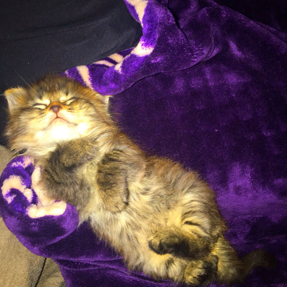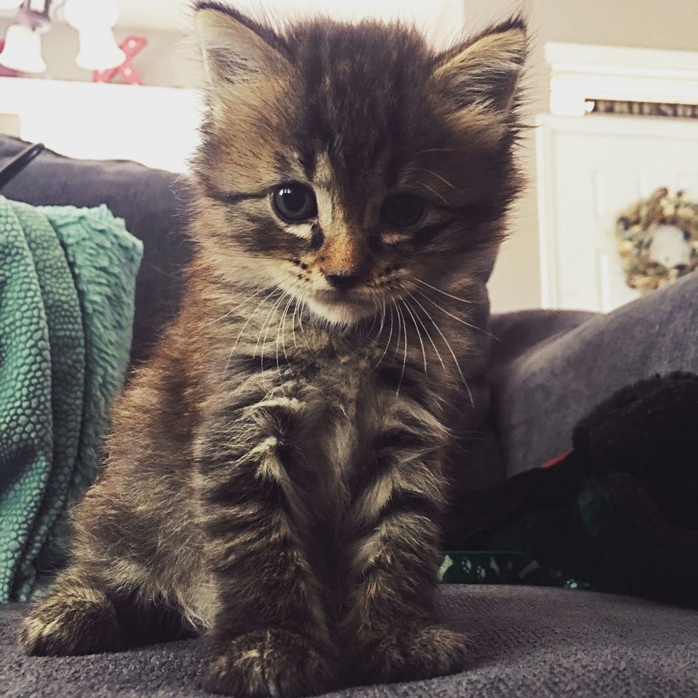 The pocket-sized kitten who was found in the woods, has grown to be a gorgeous fluffy kitty!
