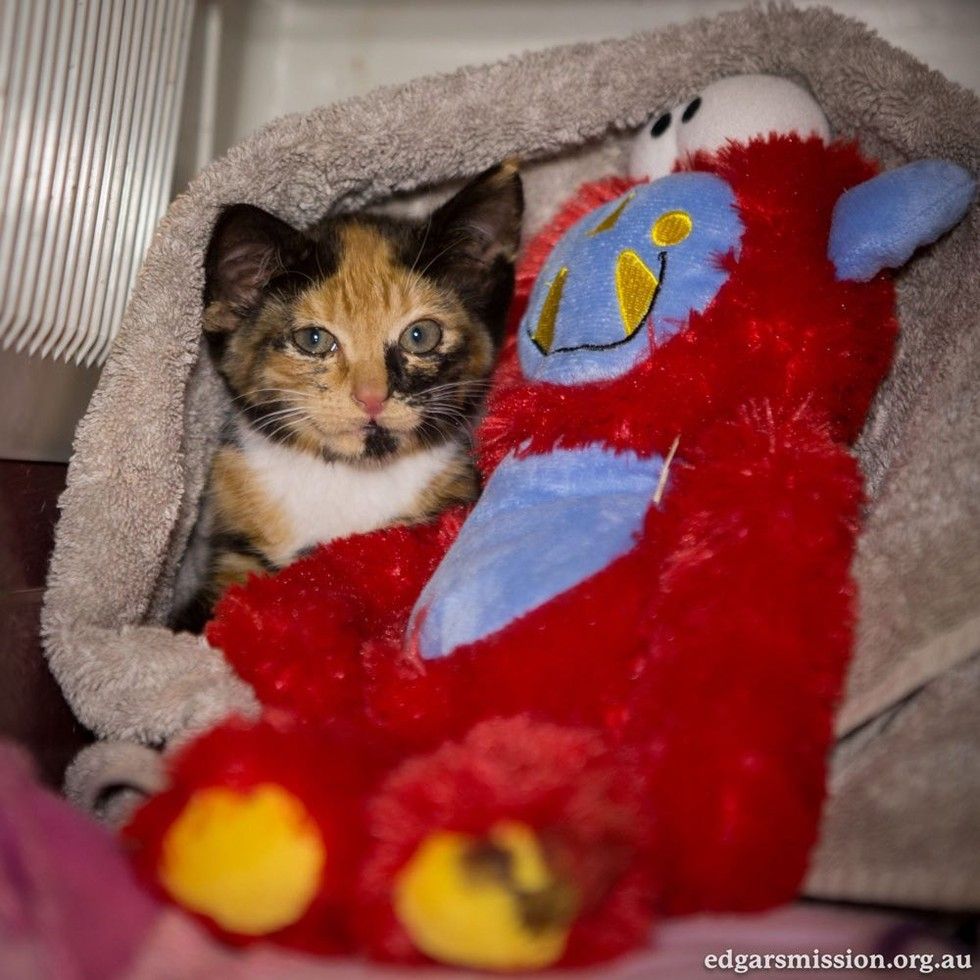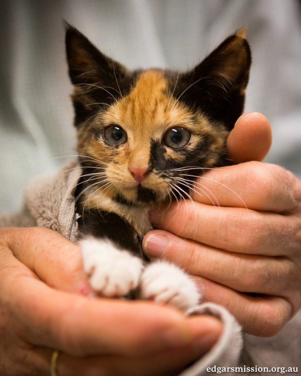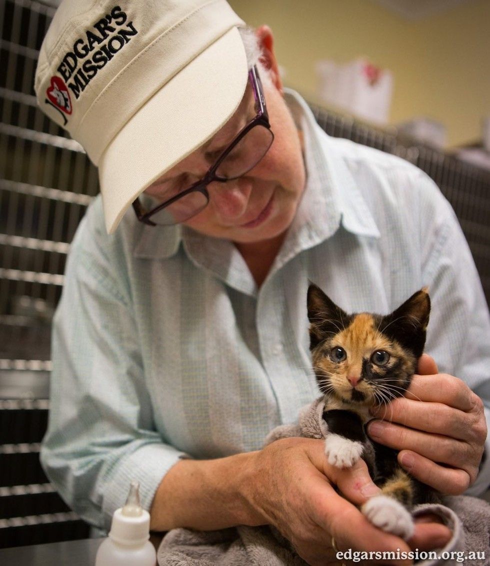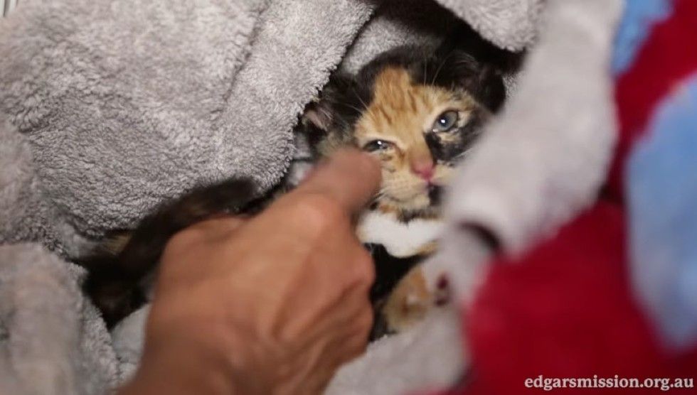 Right before Christmas last year, Pam Ahern of Edgar's Mission, an animal sanctuary in Victoria, Australia, received a call about a tiny kitten stuck between two tin sheds. They knew they had to help!