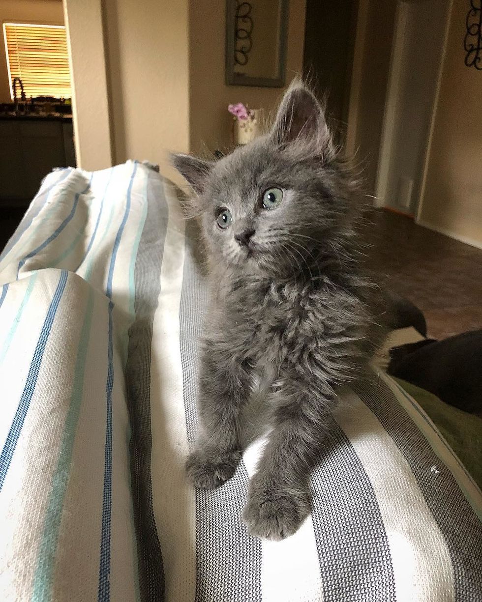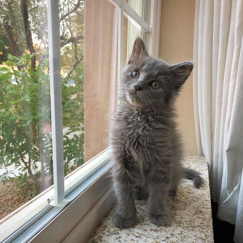 Today Bert went to his forever home in Arizona to meet his feline siblings Daisy and Dusty, both grey kitties just like Bert.