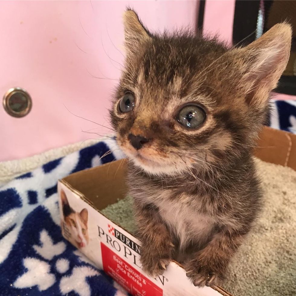 Heather Fontaine-Doyle, a volunteer of Broken Tail Rescue, was contacted about a litter of kittens that needed a foster home. They were found in a cat colony, and one of the kittens was much smaller than his siblings.