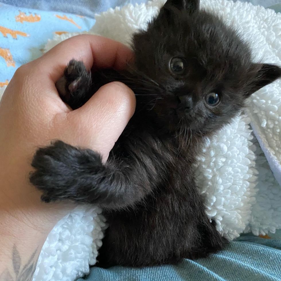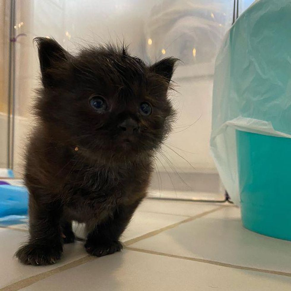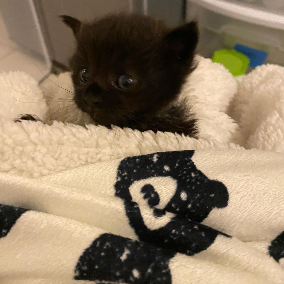 A week ago, Laura Malone, director of Mini Cat Town, picked up a kitten from a local shelter, who was in need of foster care. The tiny panther kitty had been brought in as a singleton, with no information on the whereabouts of his mom.