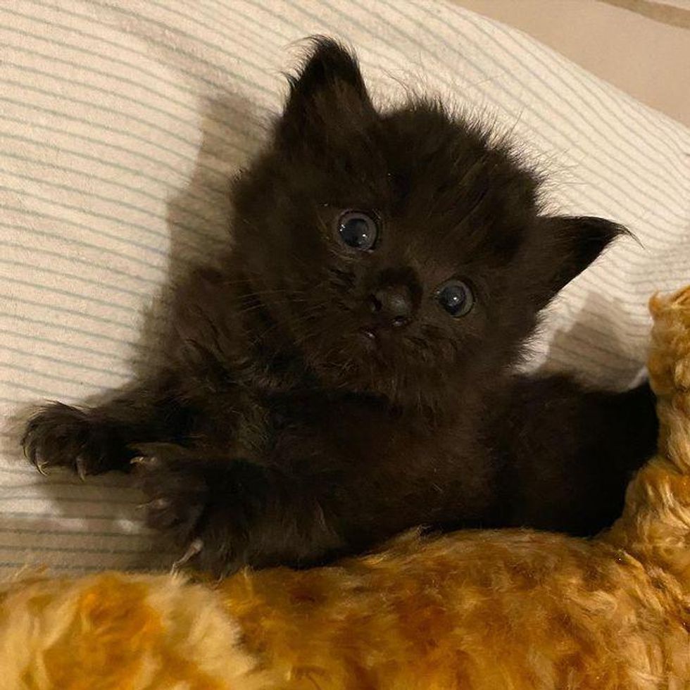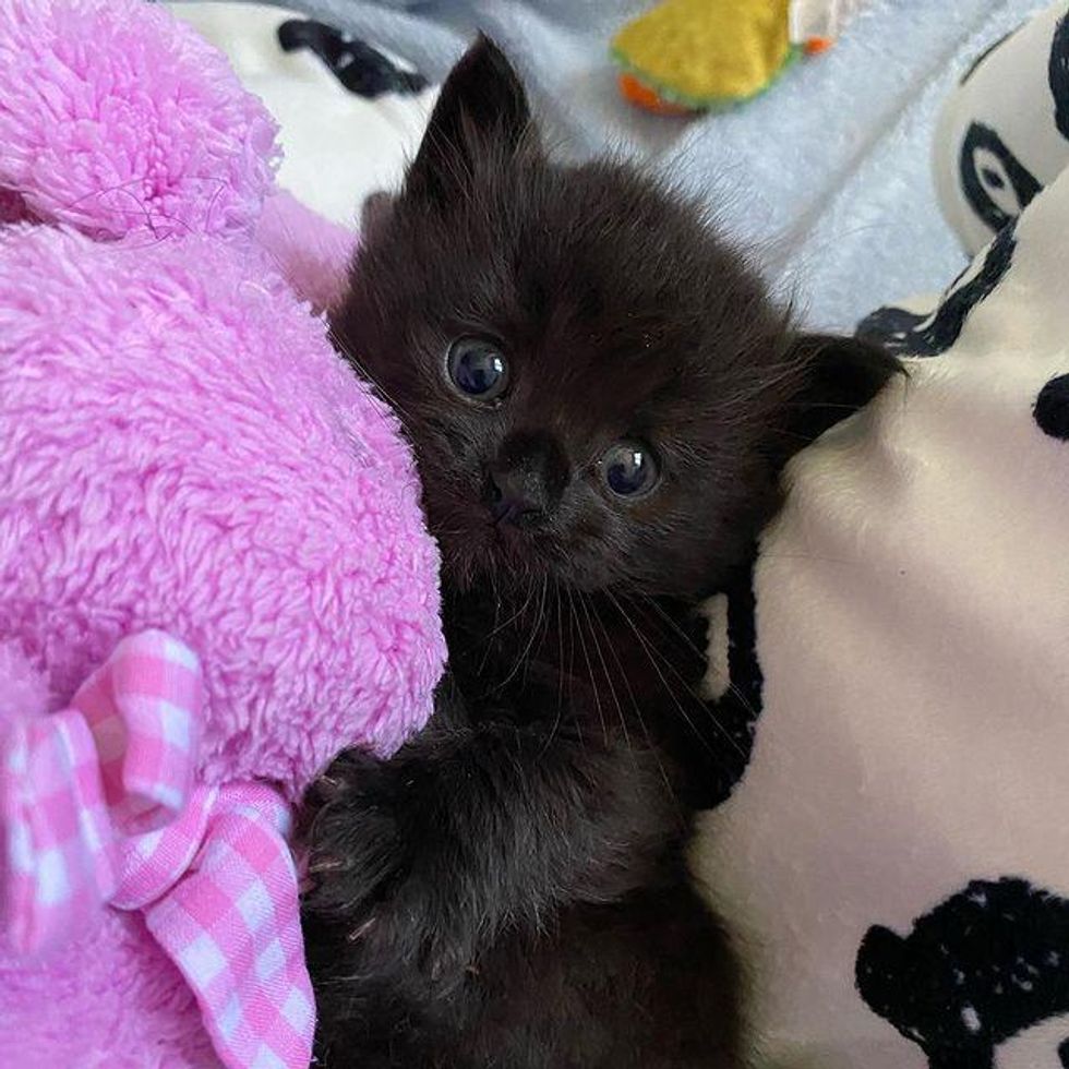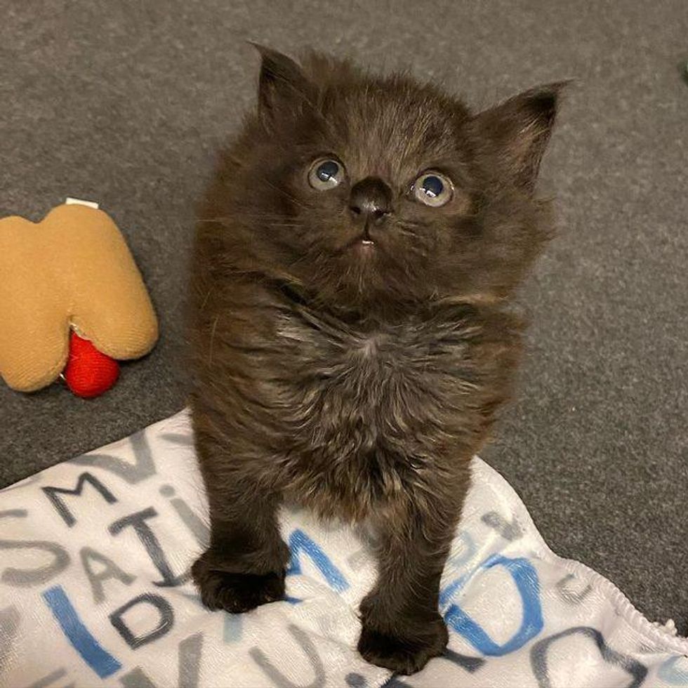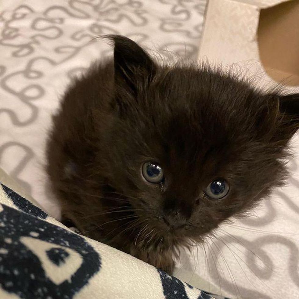 A week ago, Laura Malone, director of Mini Cat Town, picked up a kitten from a local shelter, who was in need of foster care. The tiny panther kitty had been brought in as a singleton, with no information on the whereabouts of his mom.