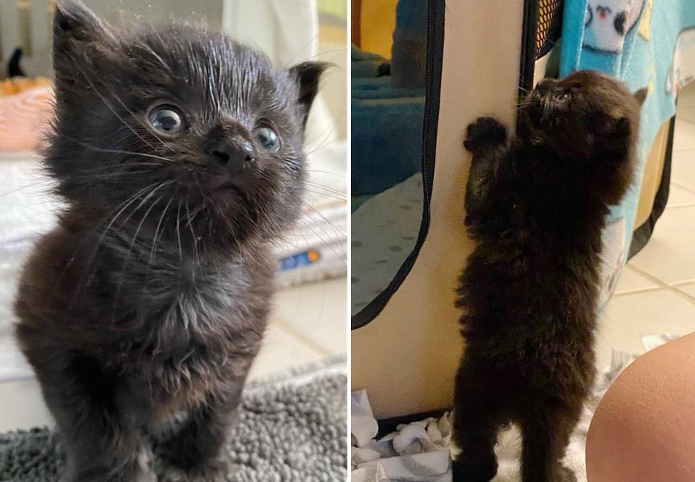It's been about a week since Koda was rescued, the kitten has grown in size and fluff along with his emerging personality.
