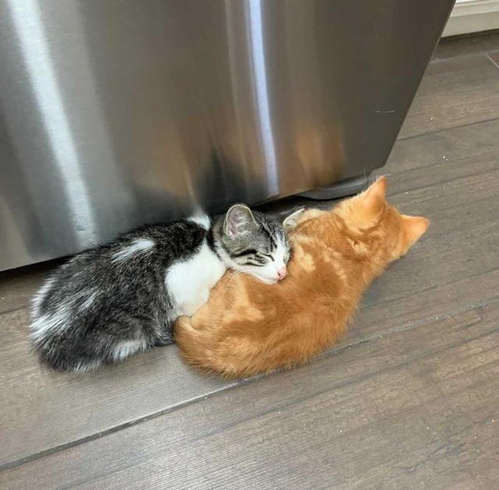 Tiny has become very nurturing to his buddy and snuggles with him whenever he naps.