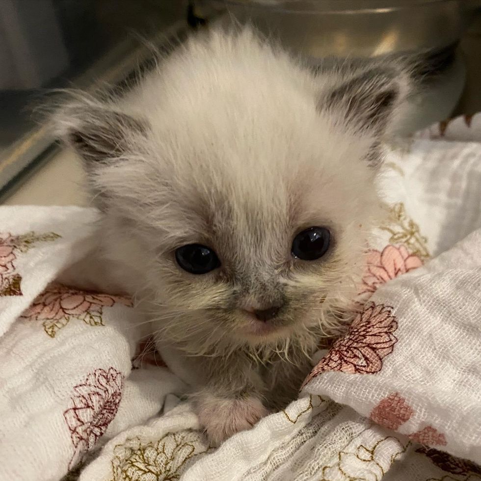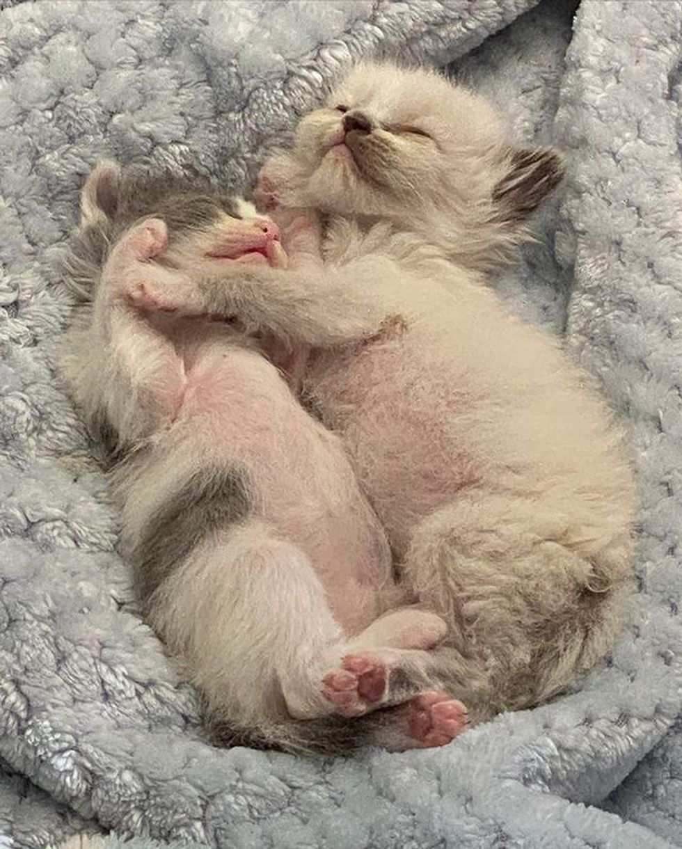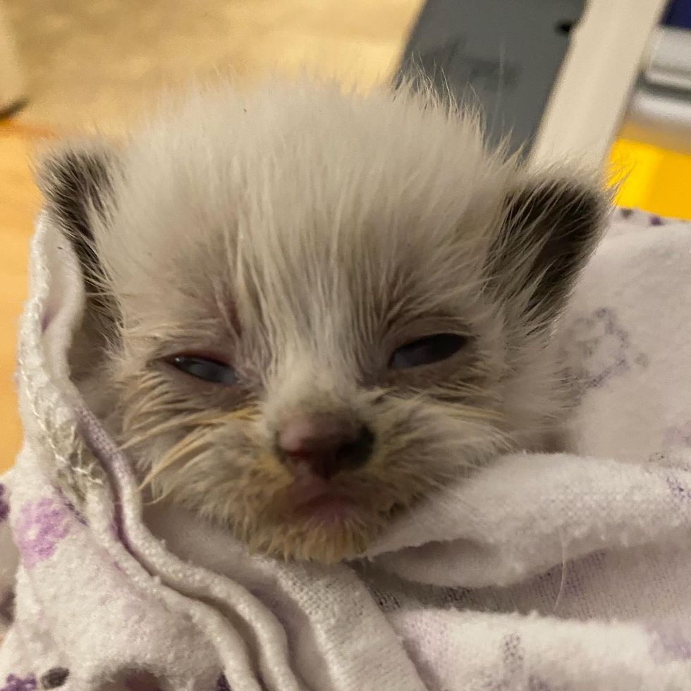 Lilo, the runt of the litter, showed a strong will to live despite being so tiny. The kittens were placed in an incubator, and their foster mom Laura began feeding them and caring for them around the clock.