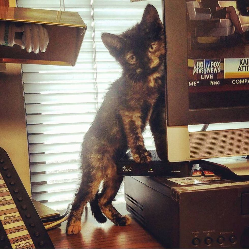 When firefighters were alerted about the kitten, they got her out to safety and gave her a roof over her head.