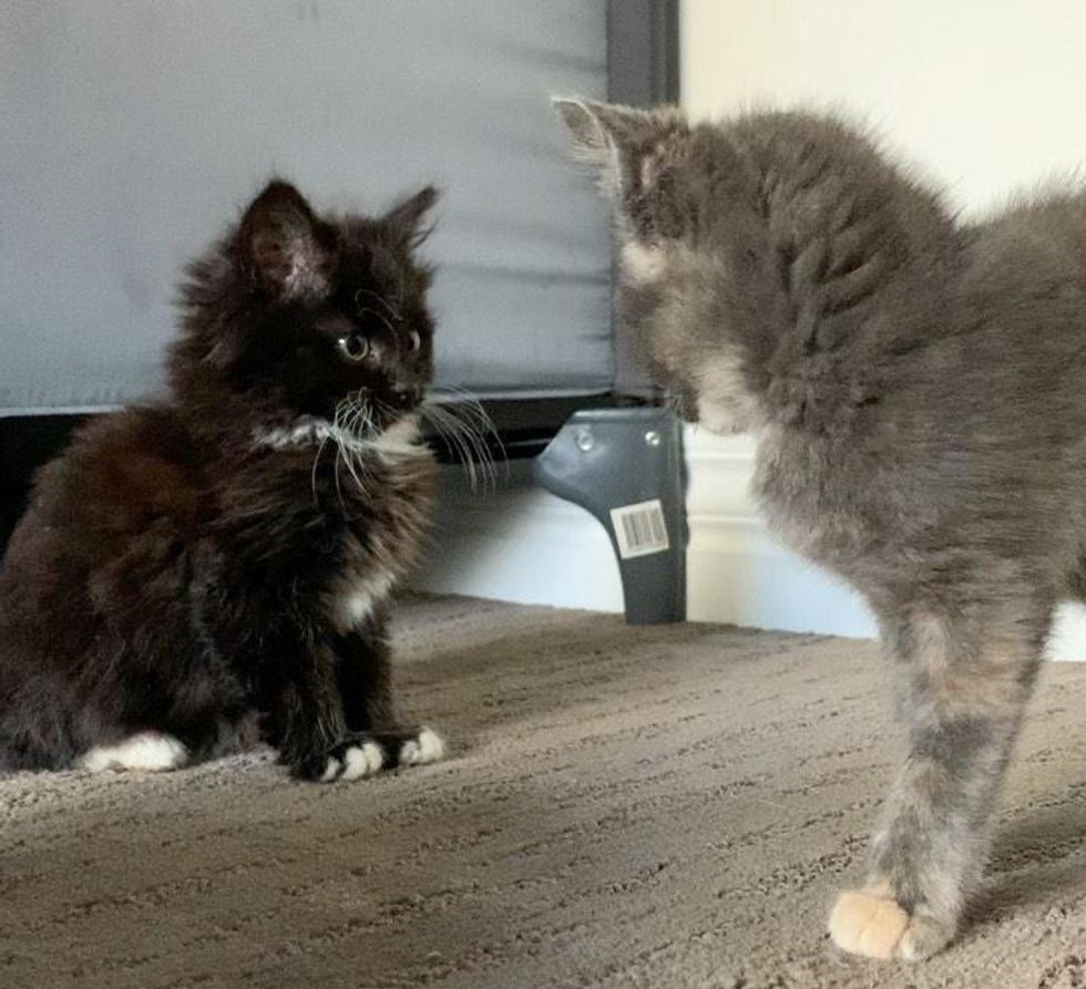 "She is a cheeky little girl and loves to sneak attack the other kittens, and run around with her tail straight up in the air."