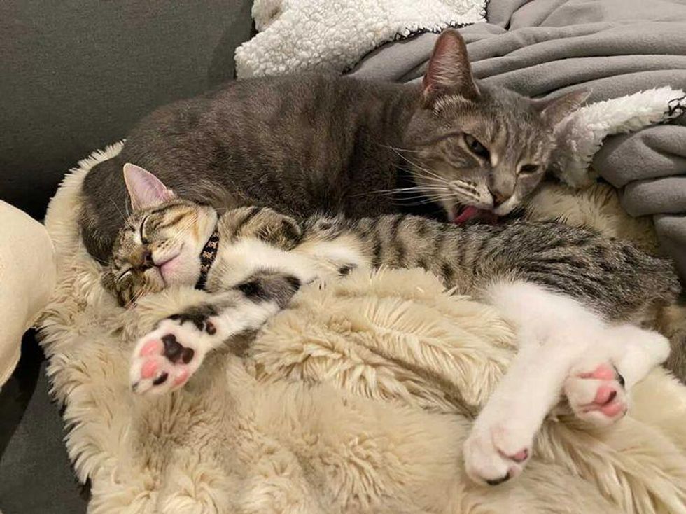 "They bonded first over their missing front left legs. It was the sweetest thing to see her take him under her wing and start grooming him soon after meeting," Andrea shared with Love Meow.