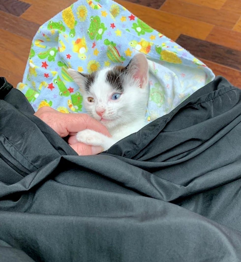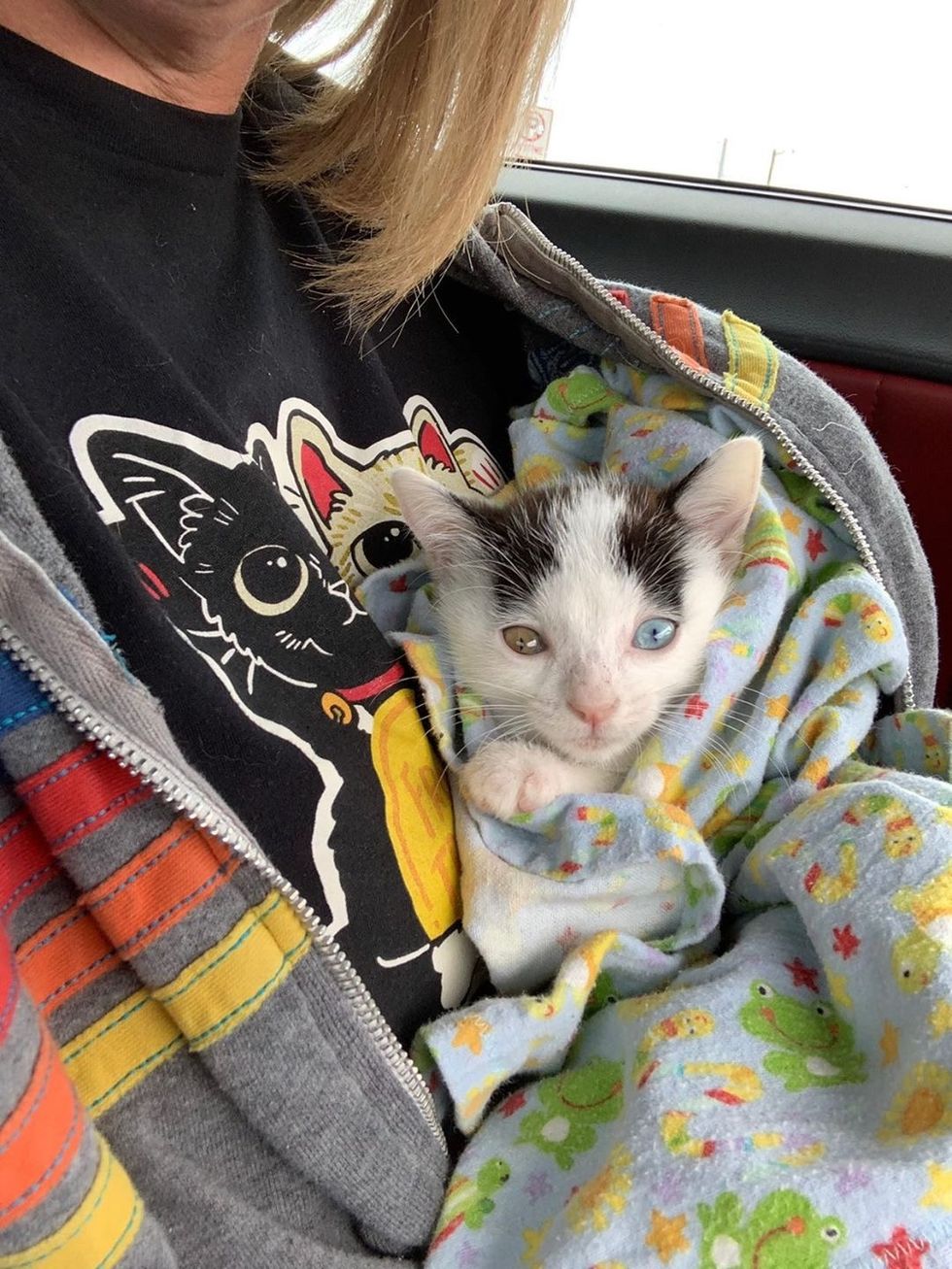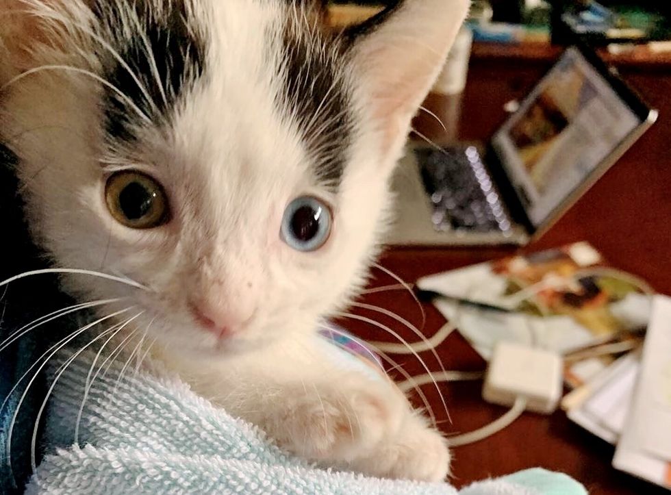 Nova the kitten was found on the side of the road by a Good Samaritan. This odd-eyed beauty is determined to never be alone again.