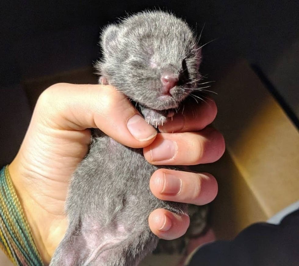 A runty kitten was found all alone without a mother in sight by a few kind neighbors in Pennsylvania. He was so tiny and very hungry.