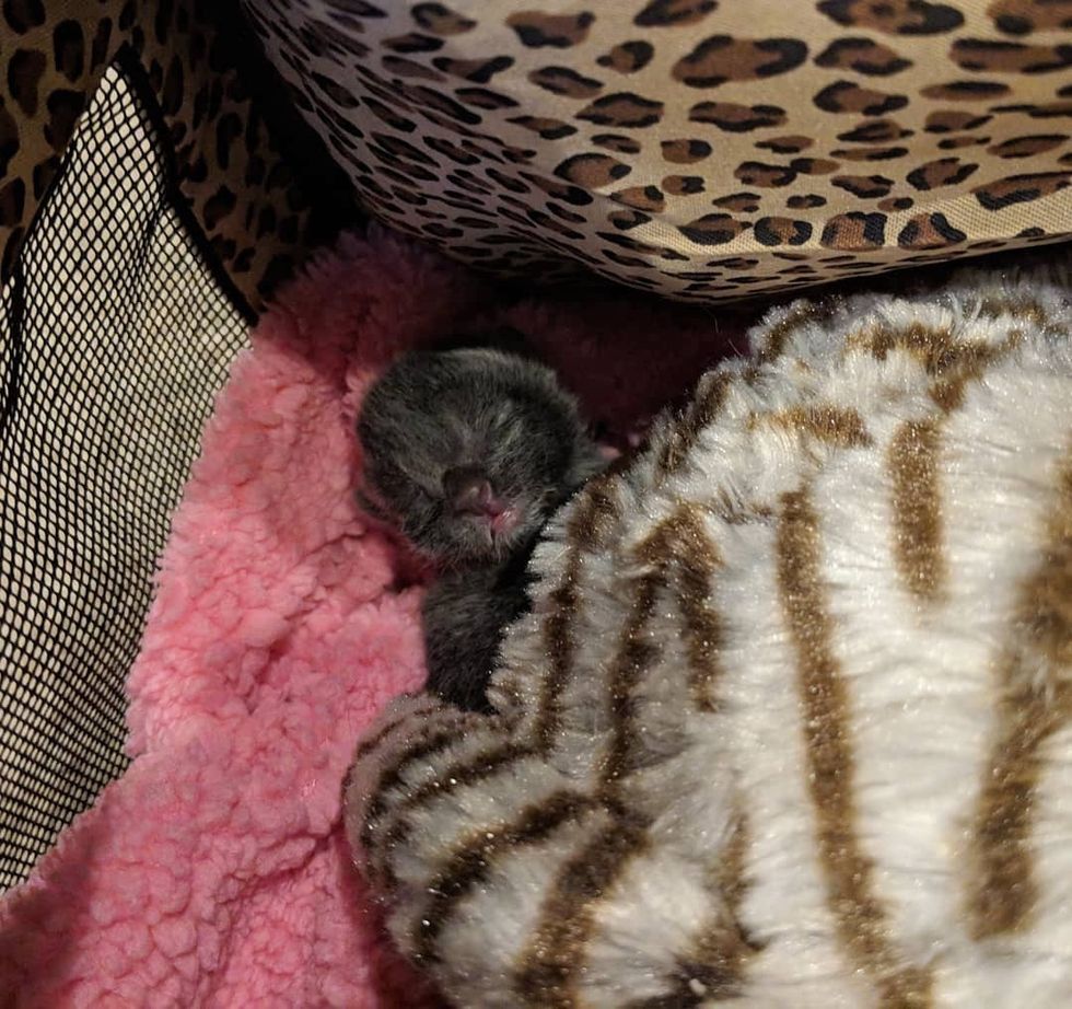 Mink was so young that he had to be kept warm at all times. They gave him a snuggle kitty toy with pulsing heartbeat as a source of comfort so he wouldn't feel alone.