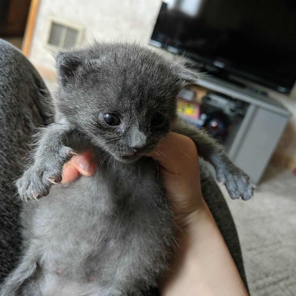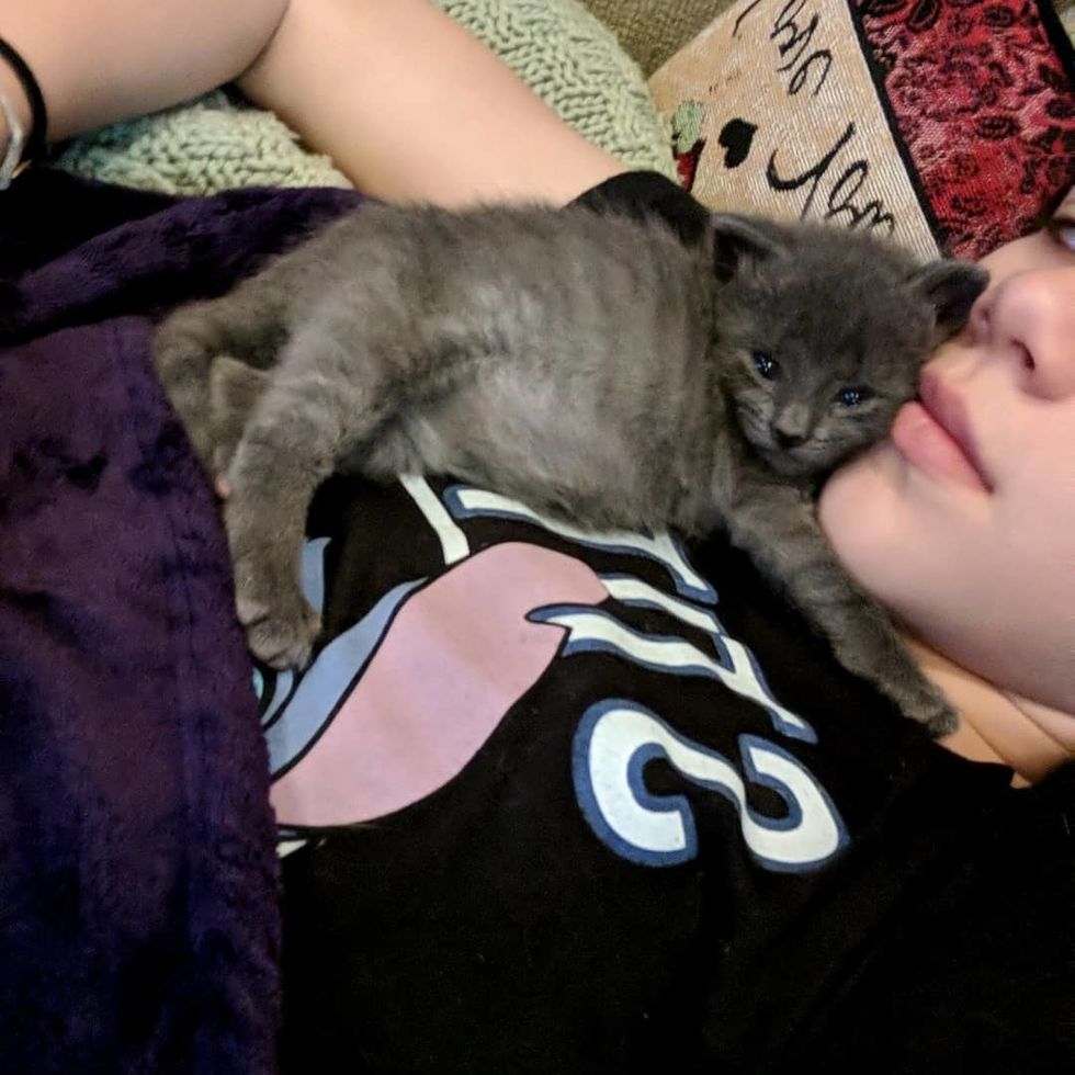 Riley, 11 years old, and her family were fostering a cat mama and her kittens at the time when they heard about the little singleton. "I took him in when he was just a few hours old," Riley told Love Meow.