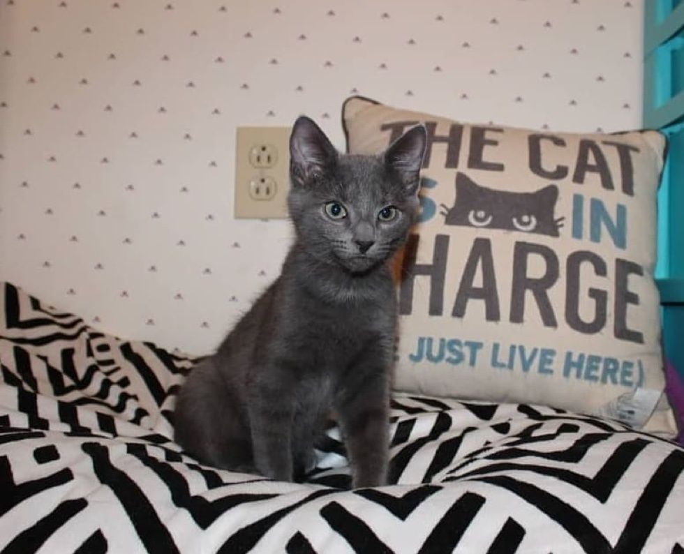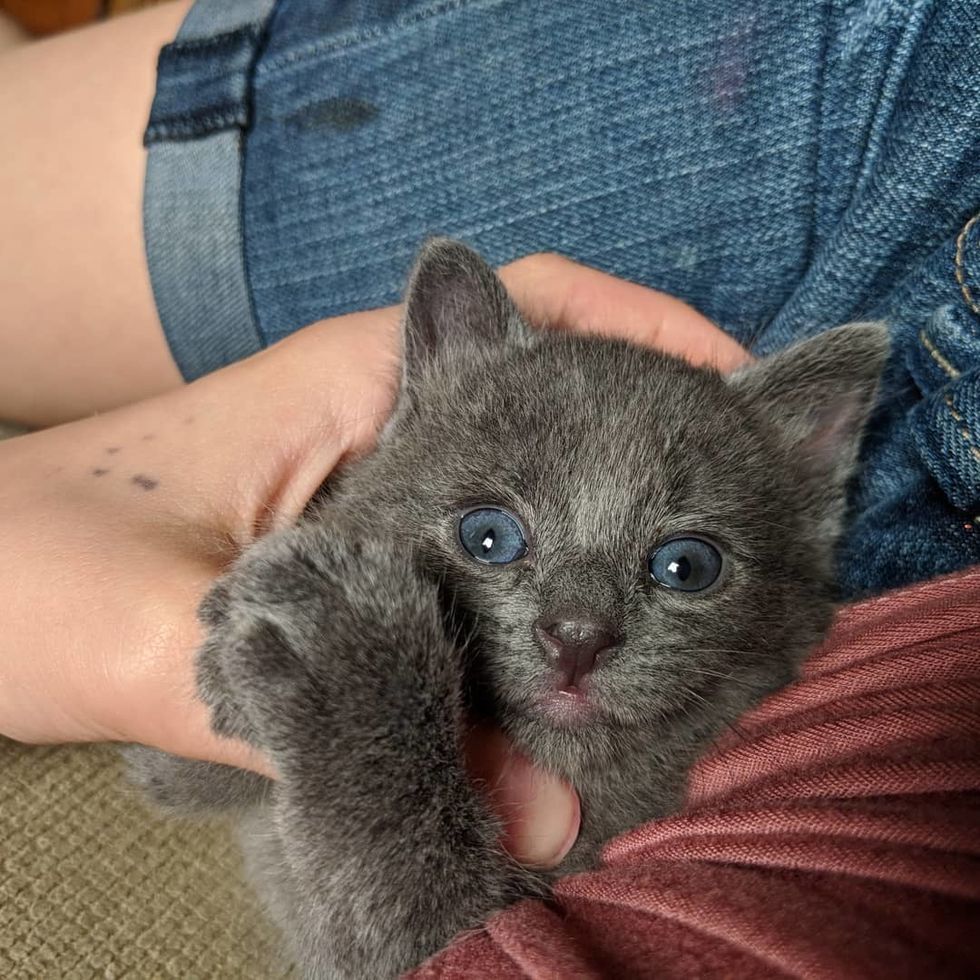 "He's the sweetest kitten who always wants affection," Riley said. "He grew fast since he liked to eat two to three times as much as kittens his age usually do."