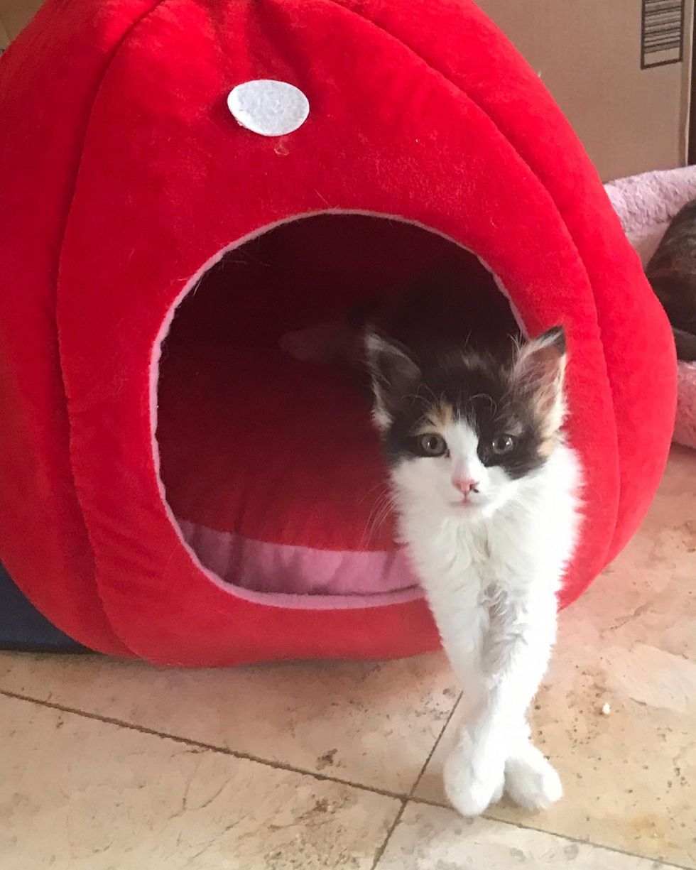 A few weeks into her healing, Toes was finally bandage free. She became an adorable purr machine and a ball of energy.