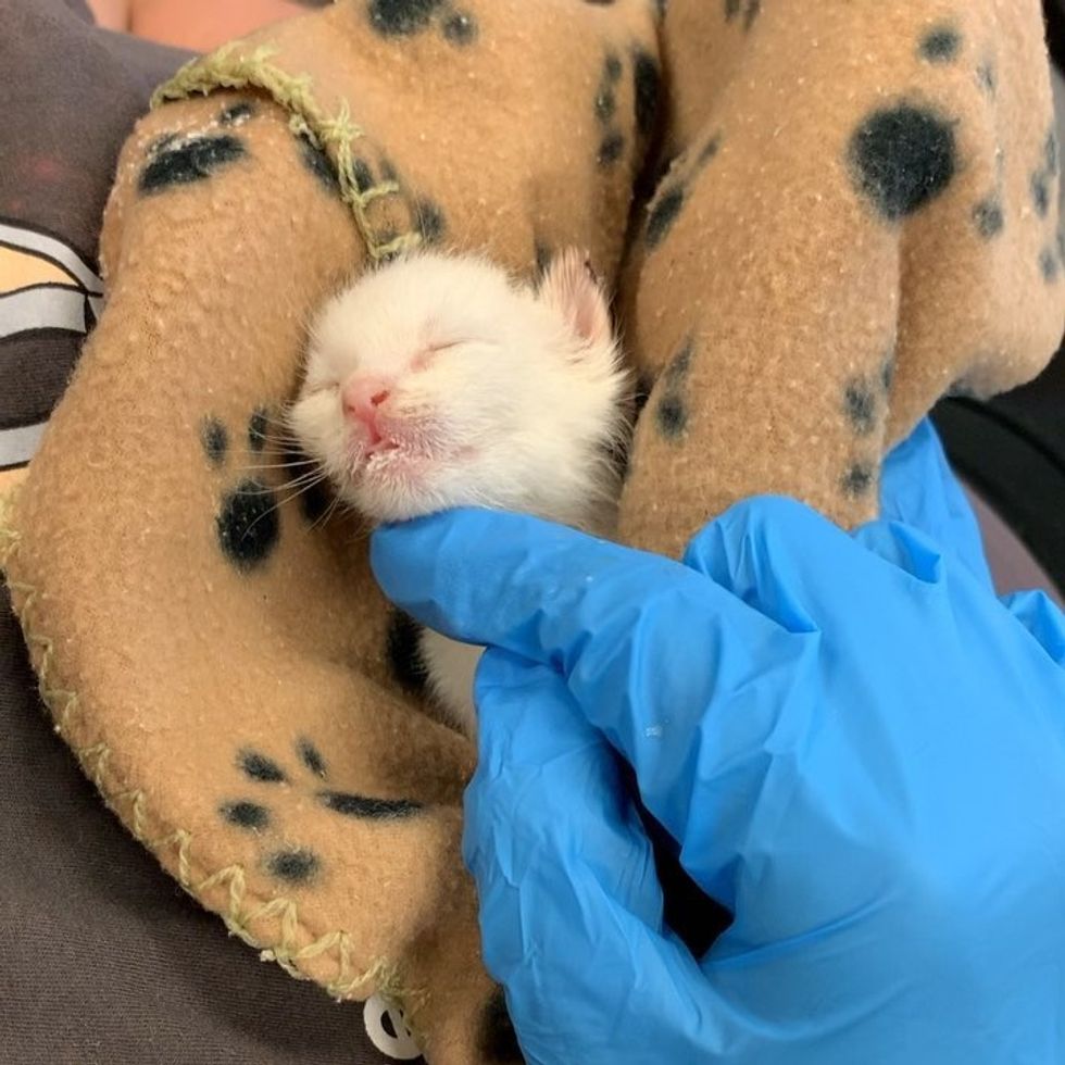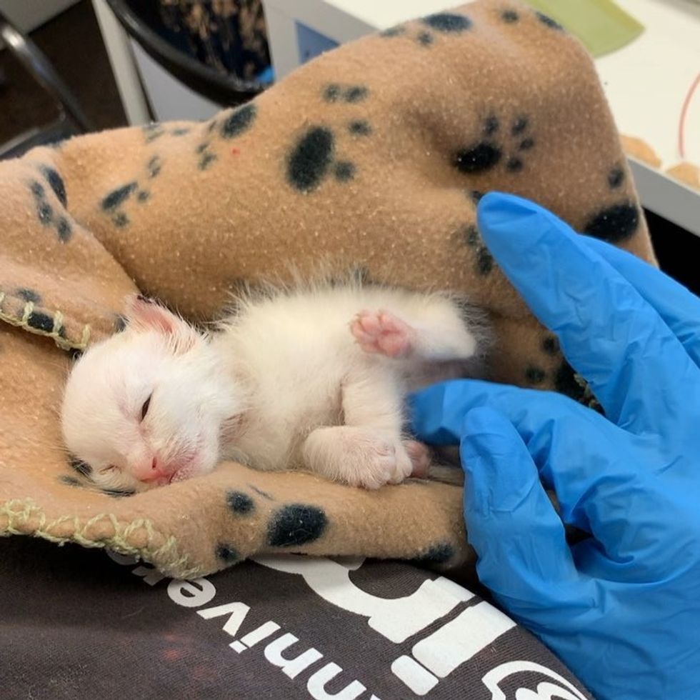 He rushed the kitten to the vet, where they discovered four puncture wounds around his neck. After cleaning and treating them, Cameron kept the kitten warm while trying to figure out what he could do to ensure his survival.
