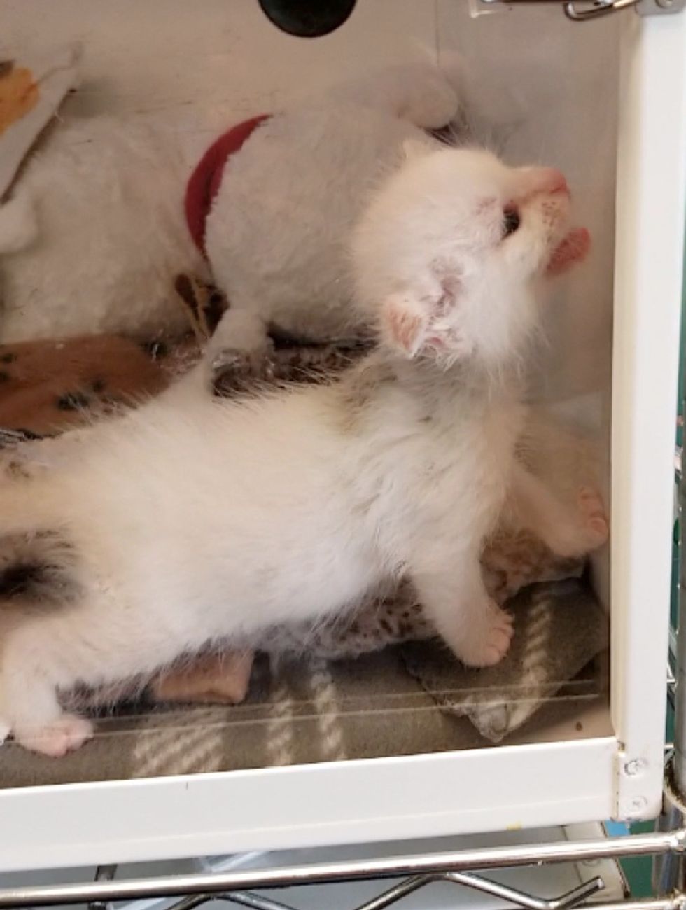 Caregivers were asked to turn the kitten over every hour, but the kitty started doing it on his own just hours after arrival.