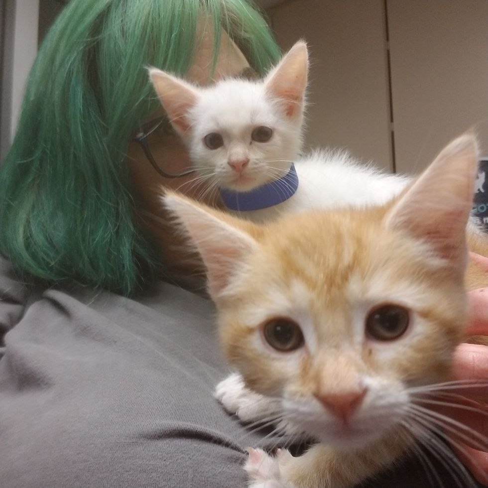 Cameron made it his mission to save the little white kitten that day. He then came back and reunited him with his brother.