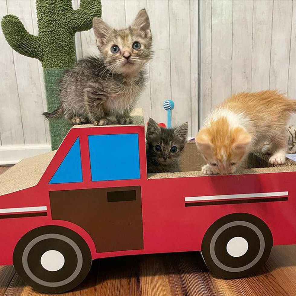 Three tiny kittens came to their foster home for a chance at a better life. They were just skin and bones and rough around the edges. The trio had a lot of growing and healing to do.