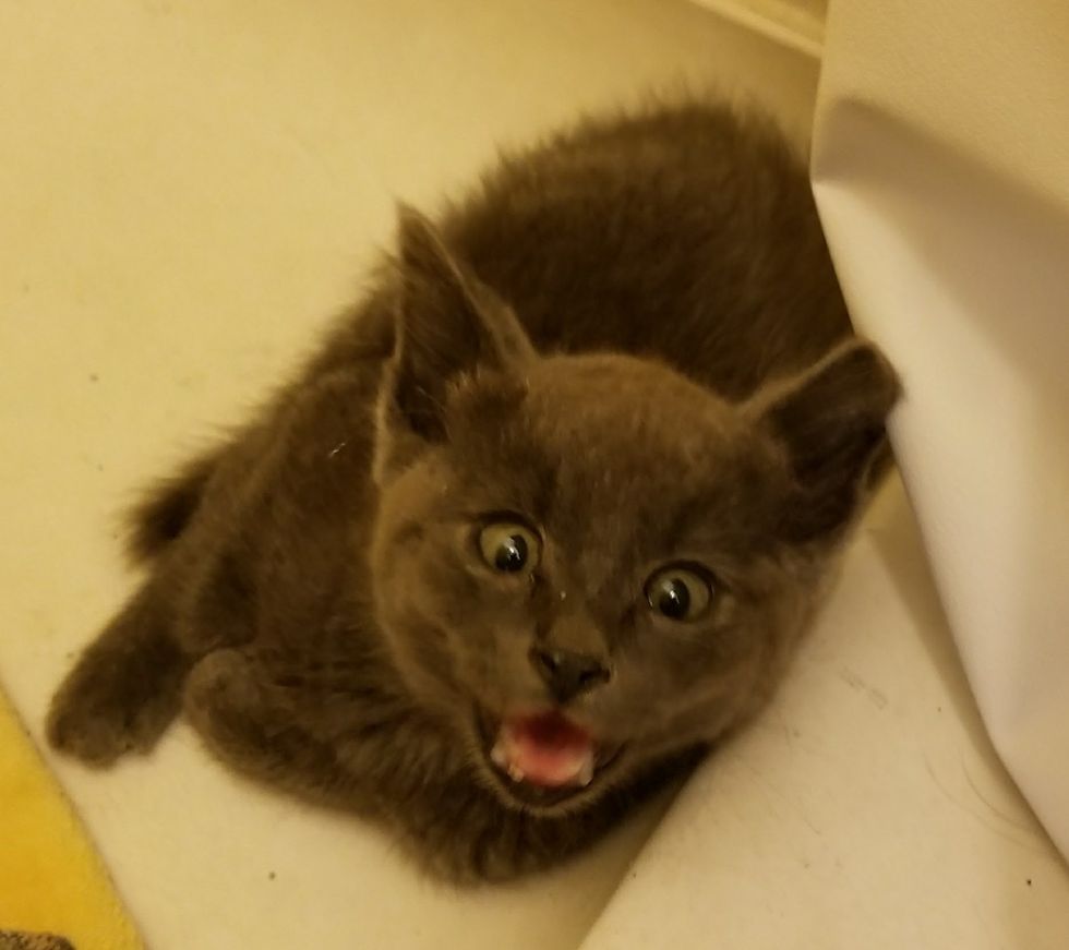 A 6-week-old kitten was found under a porch. After over 12 hours of waiting and persuading, the home owner was able to get him out to safety, but the little feline was completely terrified.