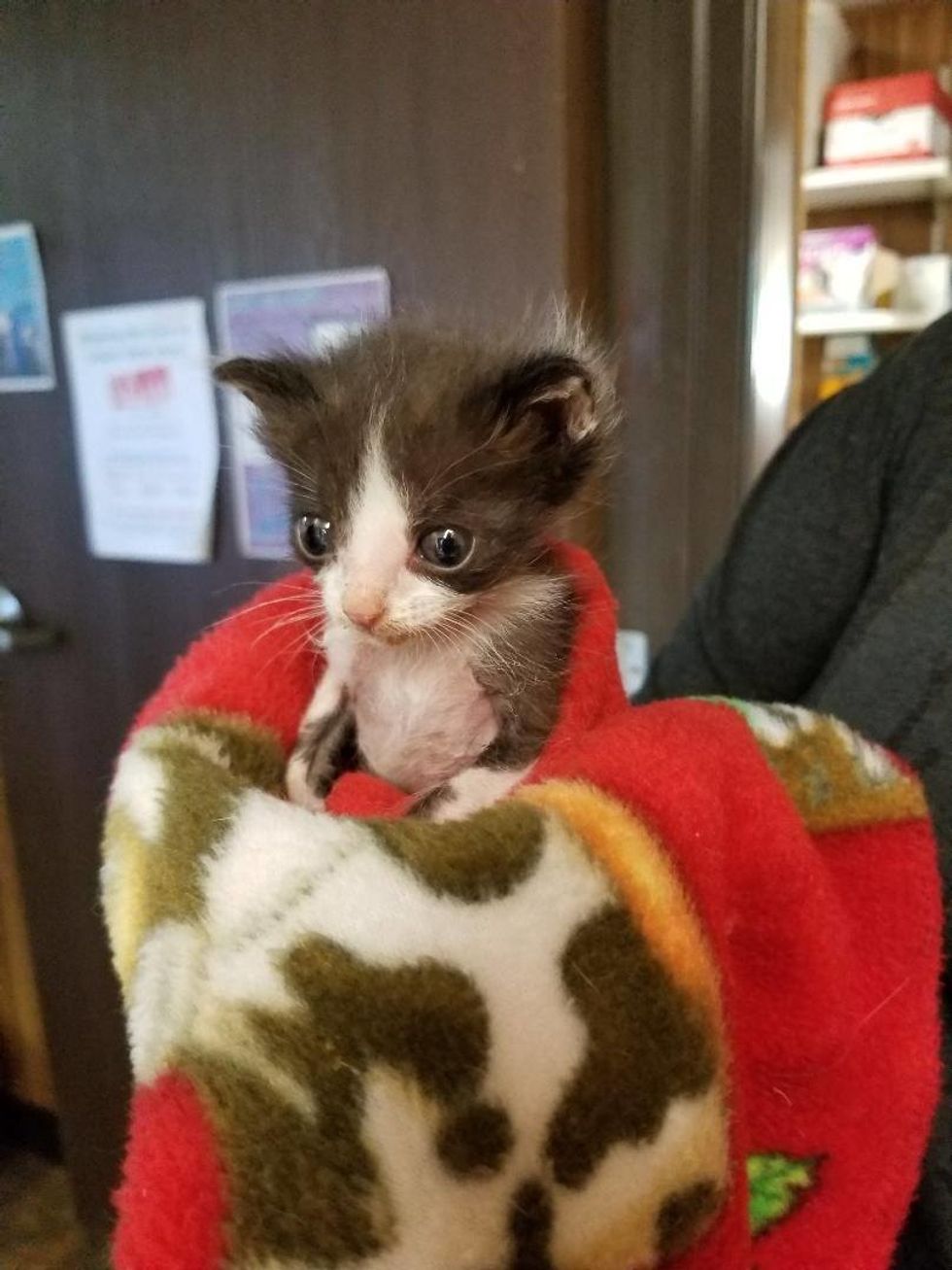 The kitten still needs a name. Follow his updates on Facebook! If you would like to support their rescue efforts, click here to see how you can help.