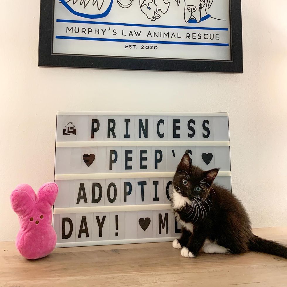 "It couldn't be a better family! They will spoil her rotten for the rest of her nine lives! Peep will have a fur brother, Cory, and live a glorious life full of snuggles, sneak attacks, and days spent purring in laps and playing with toys," Sarah shared.
