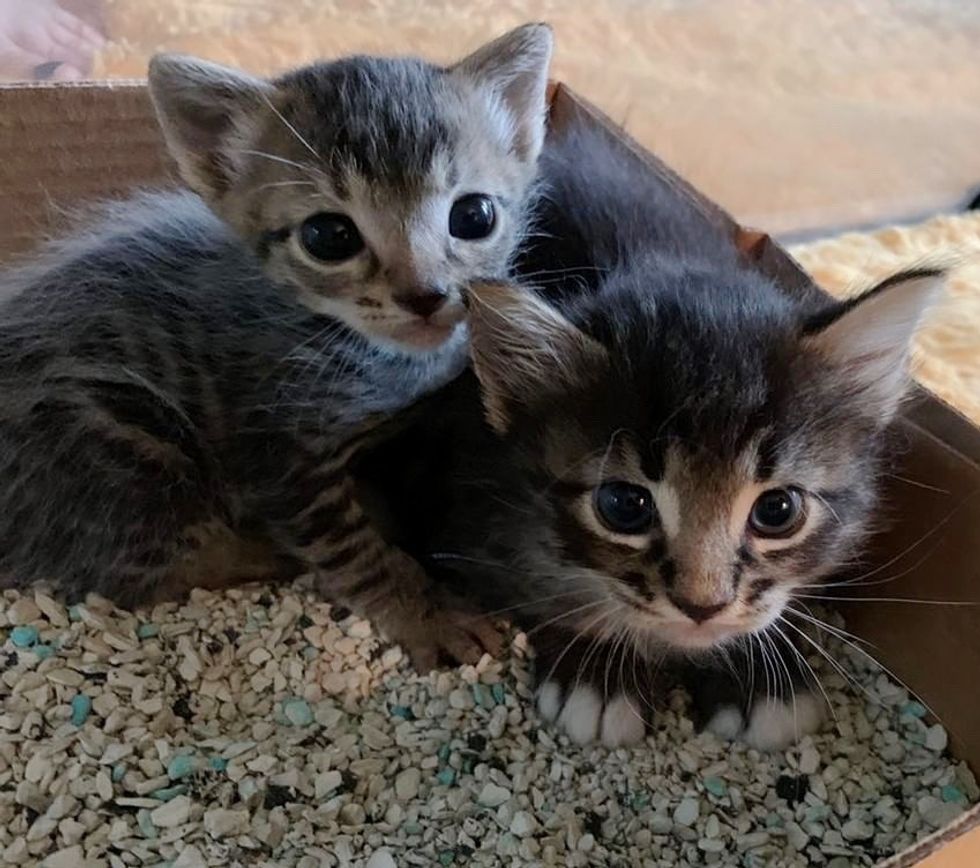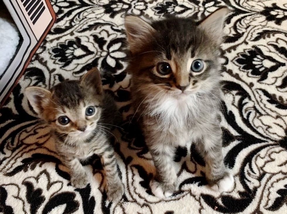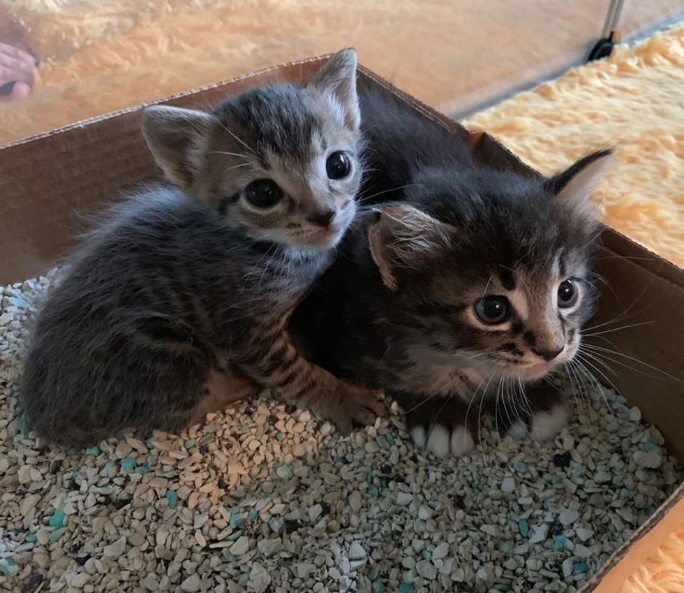 The other kitten was hiding under a towel, and when they removed it, a little ball of fluff was unveiled. They didn't have any information about the second kitten and had no idea how the two tabbies ended up together.
