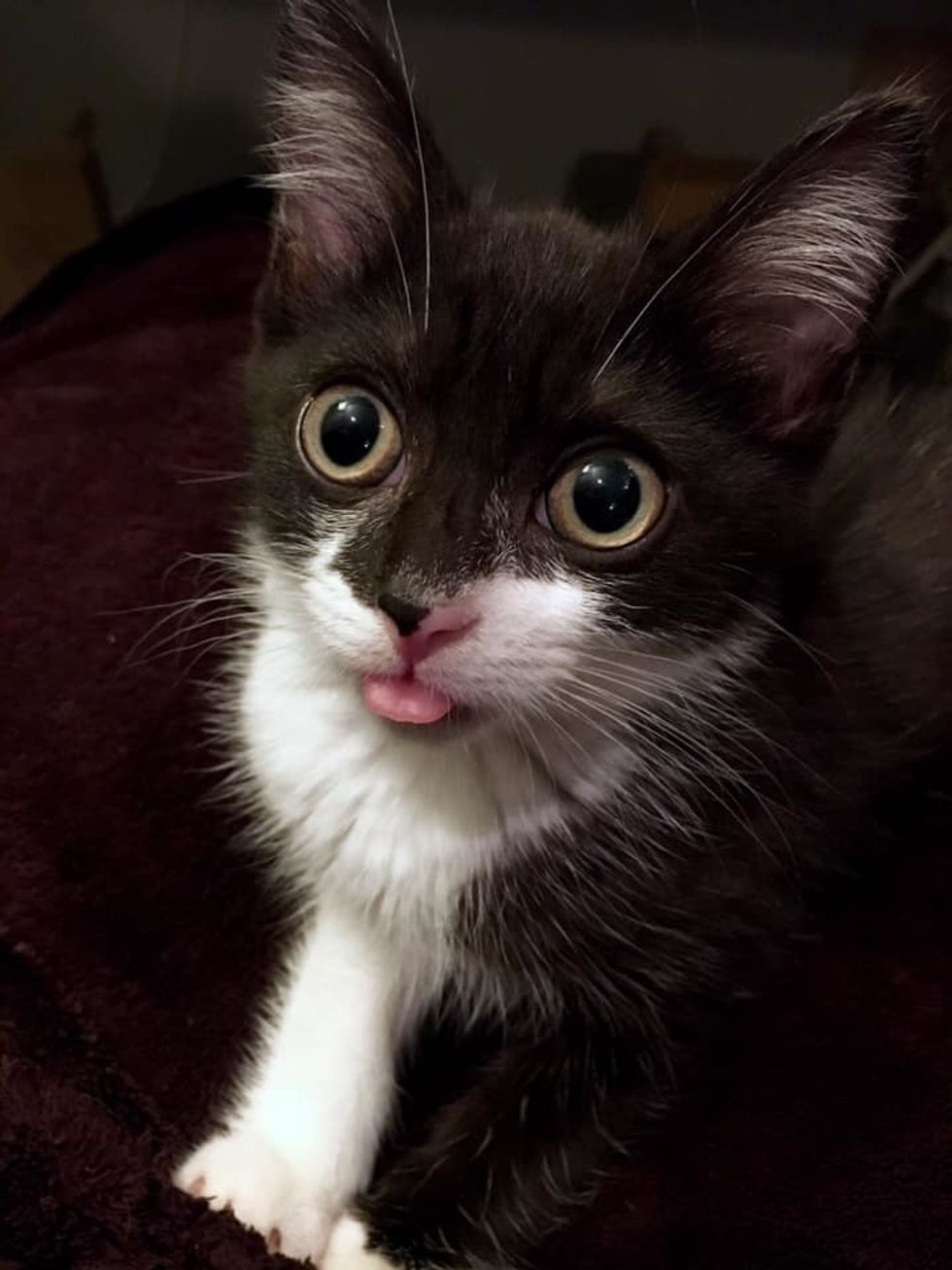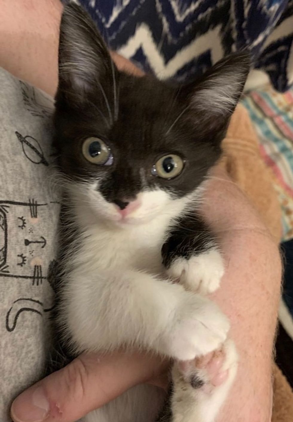 Amelia the kitten was found as a stray a month ago through a TNR (trap-neuter-return) mission. Rescuers were helping community cats in Burlington, North Carolina when they came across the tiny tuxedo.