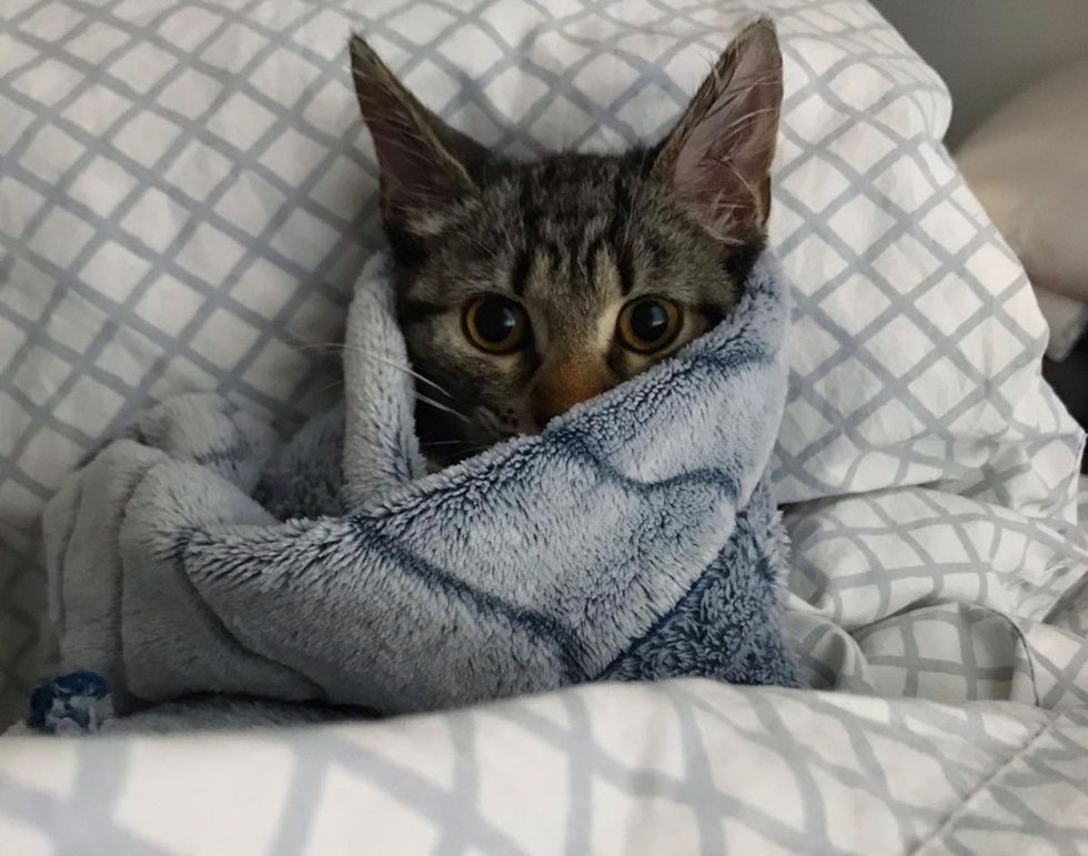 Stefany, an animal rescuer and volunteer of Chatons Orphelins Montréal, was then contacted. She picked up the kitten and transported him to Montreal.