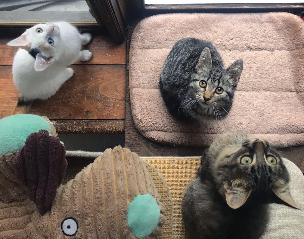 A few weeks prior to Alvin's arrival, another kitten named Pippa was found outside a residence all by herself. The homeowner heard her cries and tried to locate the elusive kitten. She left food out for the little stray, hoping to earn her trust.