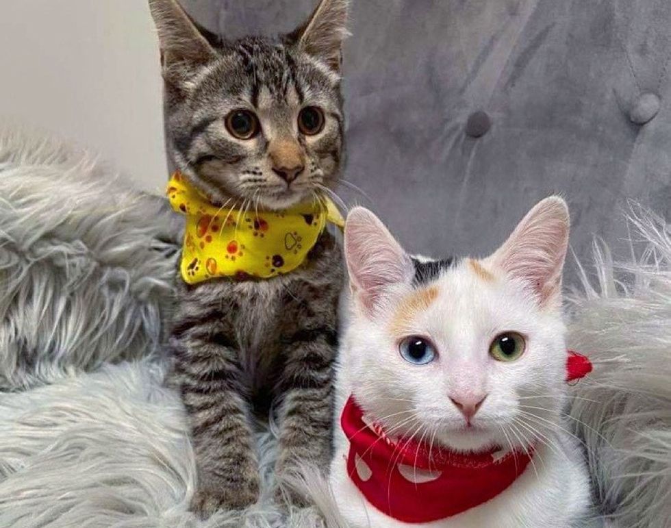 "They are very close even though they are not from the same litter. Both kittens were rescued from the outdoor life and are now looking for a forever home together."