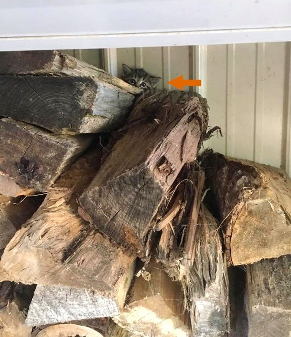 When volunteers arrived, the shyer one of the two (named Poppy) was hiding in a woodpile and refused to come out. "She was completely unsocialized to people and very fearful," Missy McNeal of Here Kitty Kitty Rescue told Love Meow.