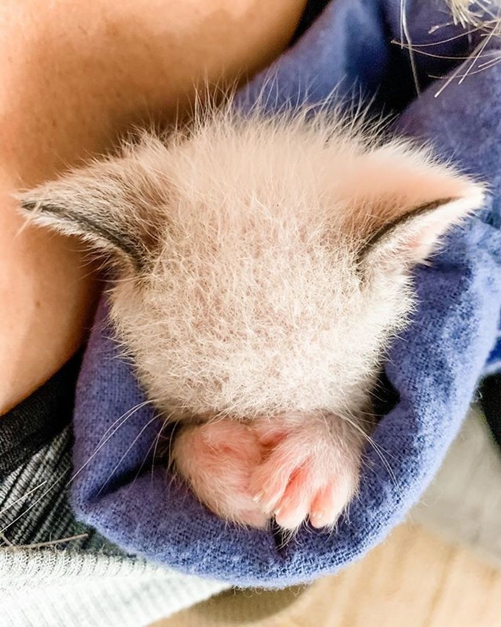 After a couple of days, the kitten (named Guinness) figured out how to eat from a syringe and started to put on weight. That's when they knew he was going to make it.
