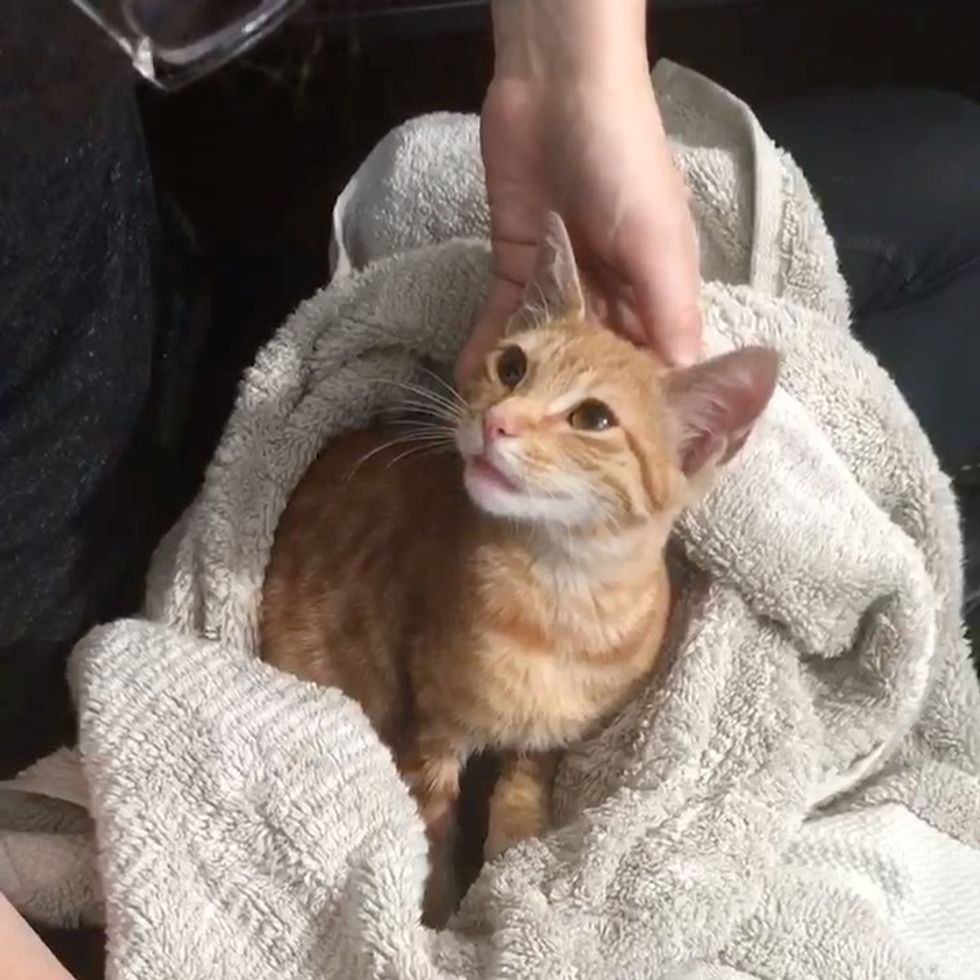 Early this month, Ariana from Brooklyn, New York was coming home with her mother from a store when they spotted a pair of eyes under a car. "As I walked towards the house, I noticed a small ginger kitten," Ariana told Love Meow.