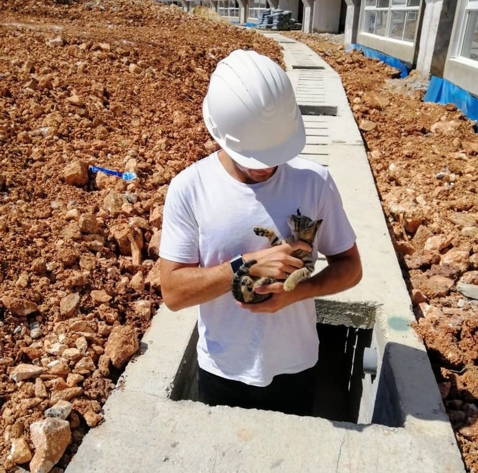 Mohamed Haydar, an engineer based in Lebanon, was working on site when a little stray kitten showed up and decided to stick around.