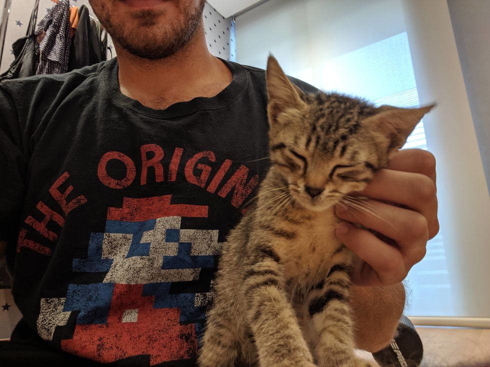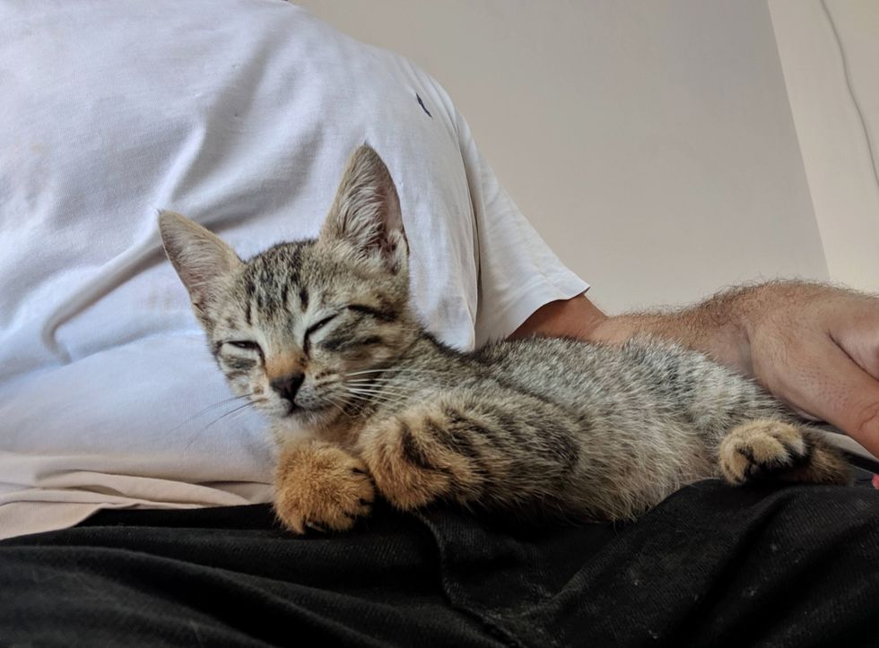 The kitten was very affectionate and just wanted to cuddle. Haydar made the decision to look after him in the office until he could find him a good home.