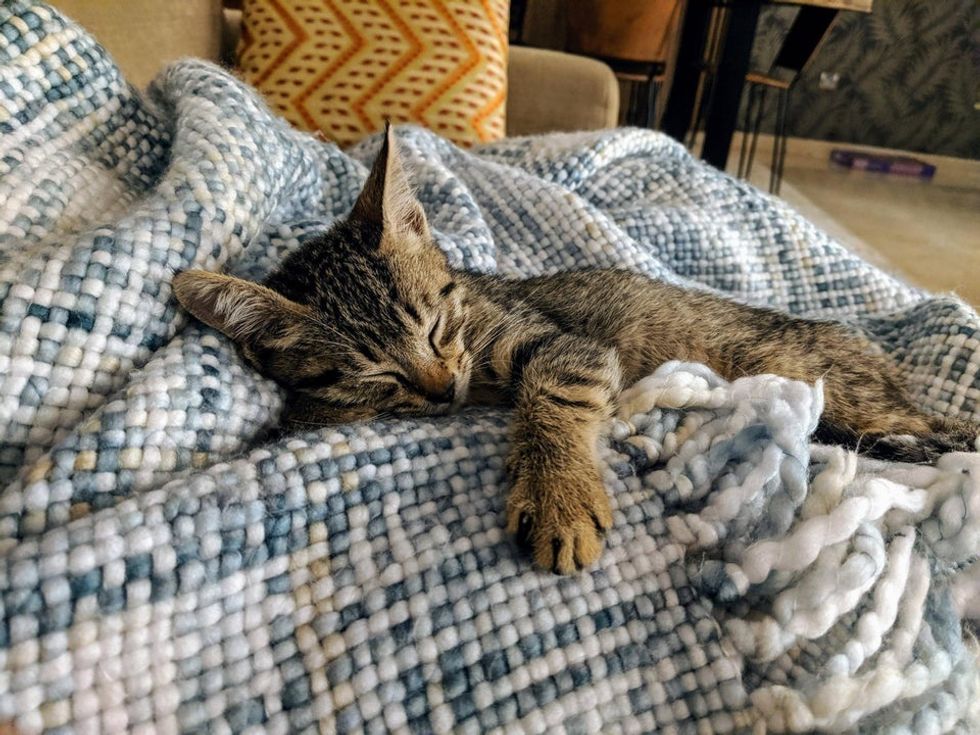 "He spends his time playing until he tires himself out and then comes to sleep in my lap or on my chest."