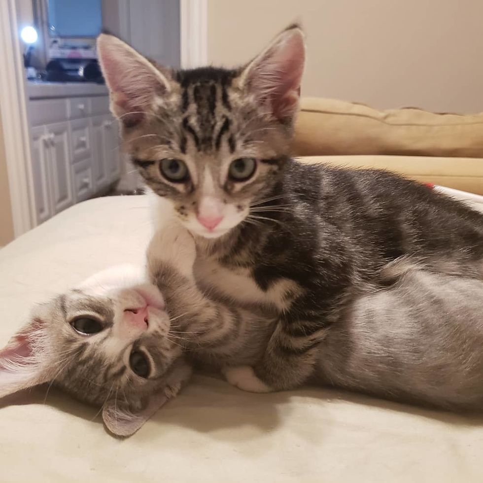 A family fell head over heels for him and adopted him into their loving home where he would have new feline siblings to love on. Needless to say, Mustang jumped right to it.
