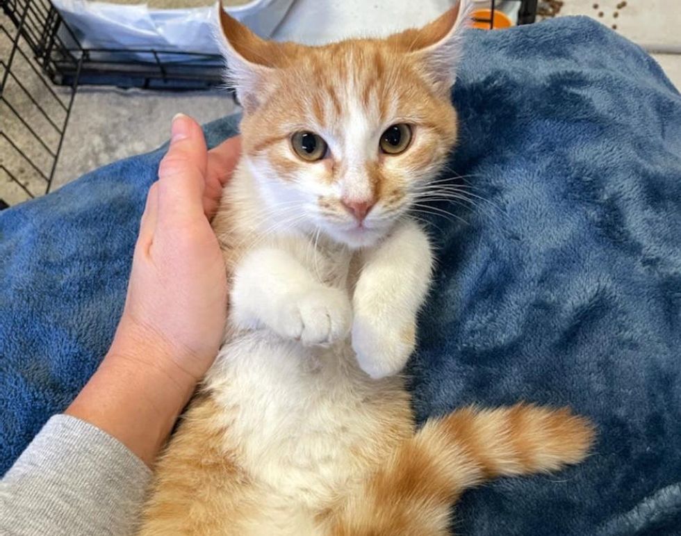 Allie Malin came across a post from the rescue, seeking volunteers to foster the cats. "I immediately applied to become a foster, and I was approved and sent a picture of this adorable orange cat with curled ears."