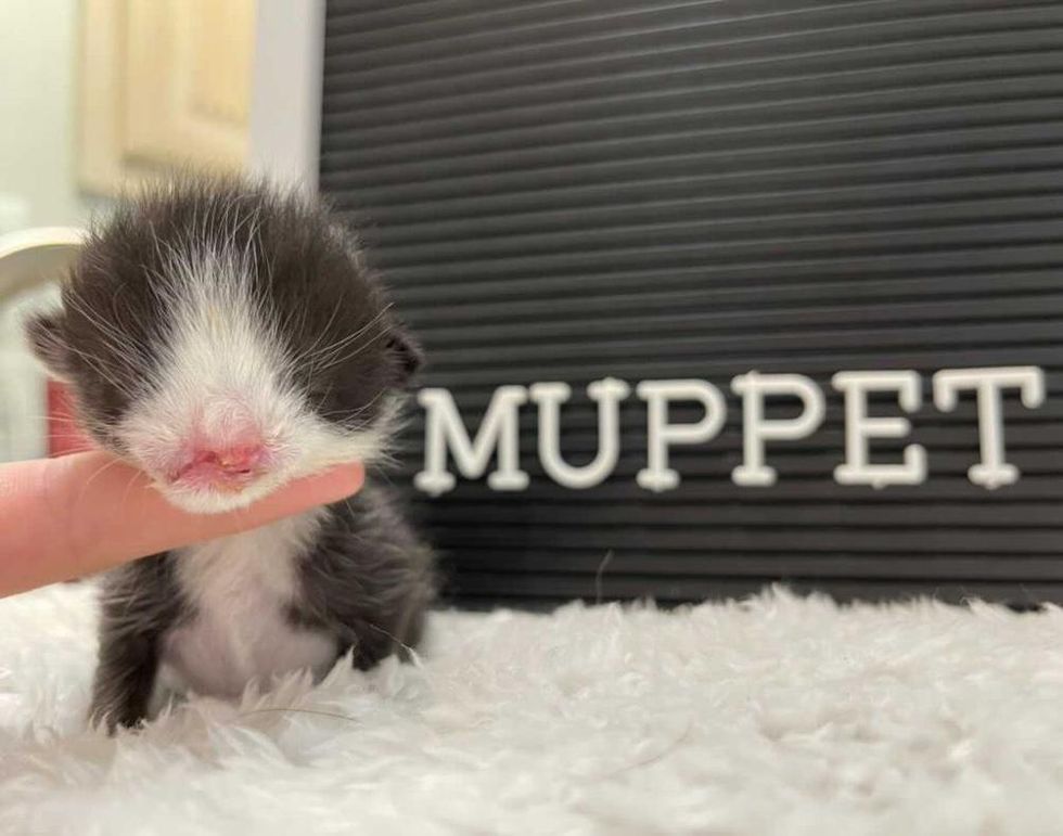 Muppet the kitten was born with deformities on his face (including a cleft palate, a cleft lip) and hydrocephalus. He was in need of specialized care and someone who would take a chance on him. Despite being a bit different, he showed incredible resolve from the start.