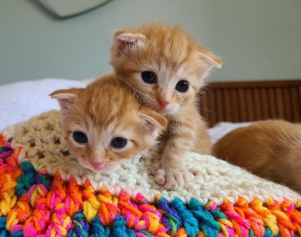 Three ginger kittens stick together and help each other thrive after being rescued from outdoor life.
