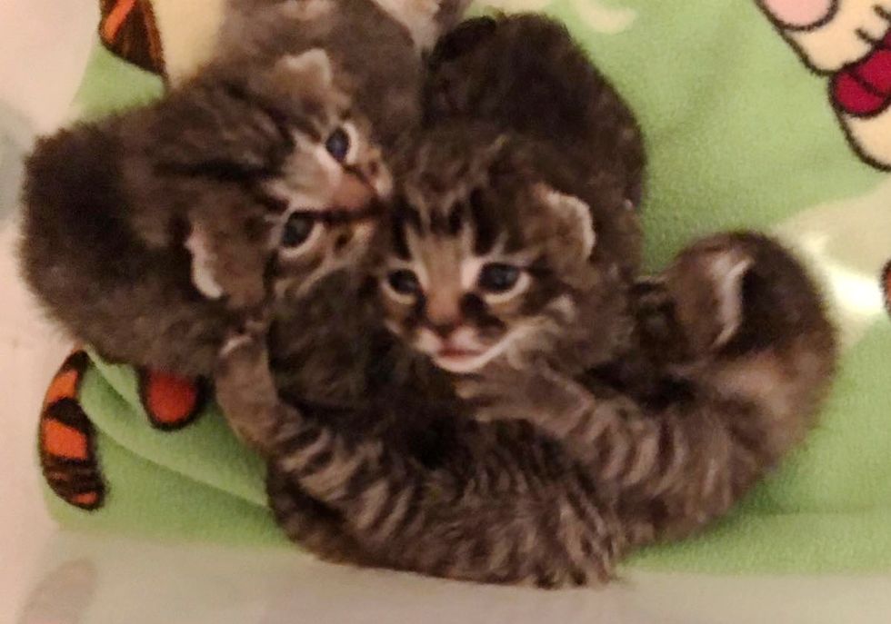 Jennifer Gillispie, founder of Here Kitty Kitty Rescue, took them home to foster and started round-the-clock feedings. The little tabbies took to their bottles like champs and began to show affection toward their caretakers.