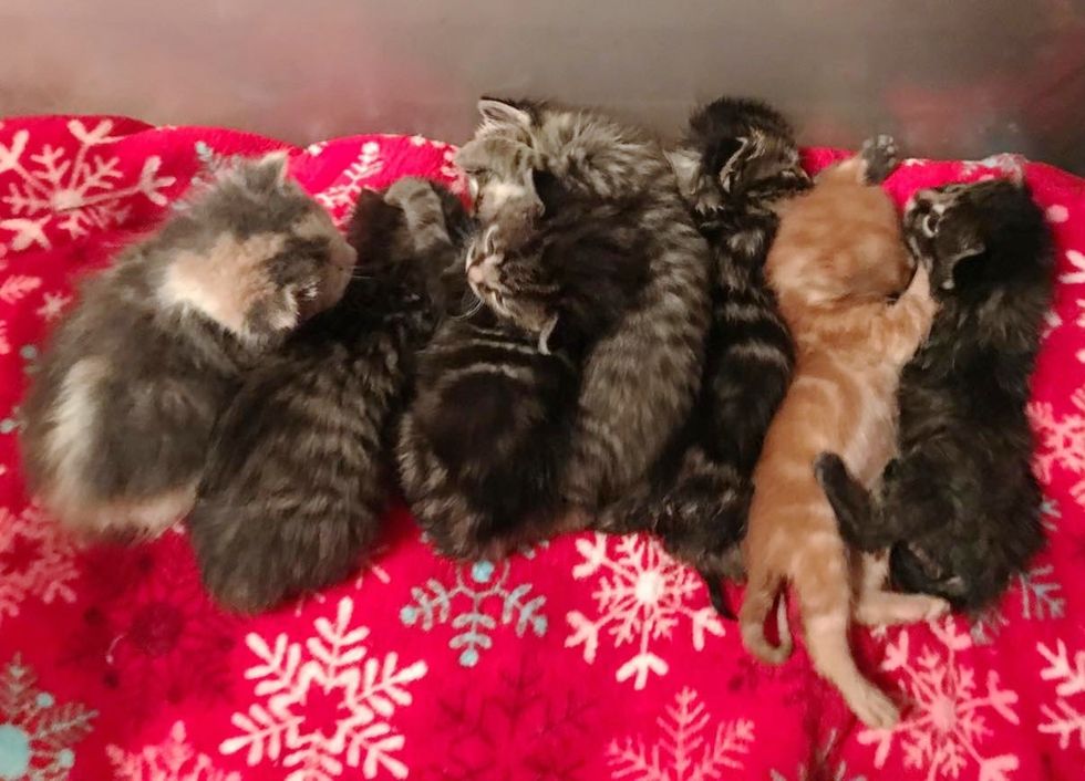 Now, the litter of four has expanded into an adorable patchwork family of seven.