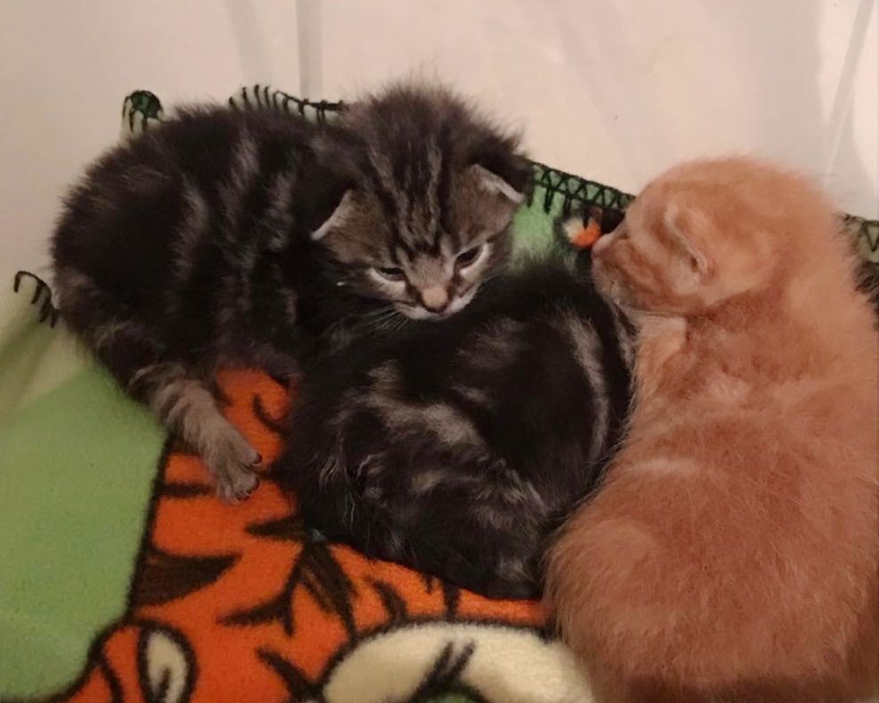 Around the same time, the rescue took in three other orphaned kittens that came from their local Humane shelter.
